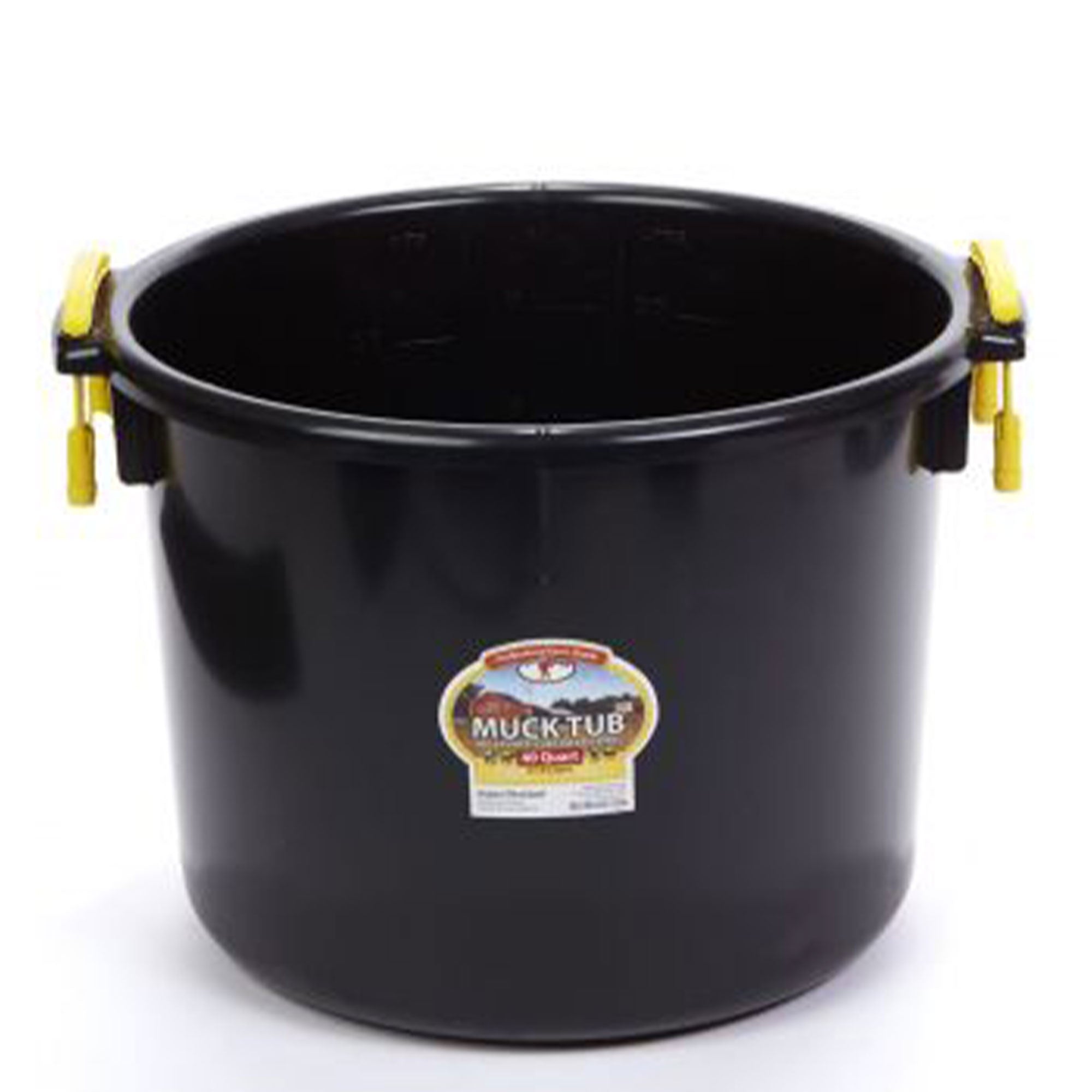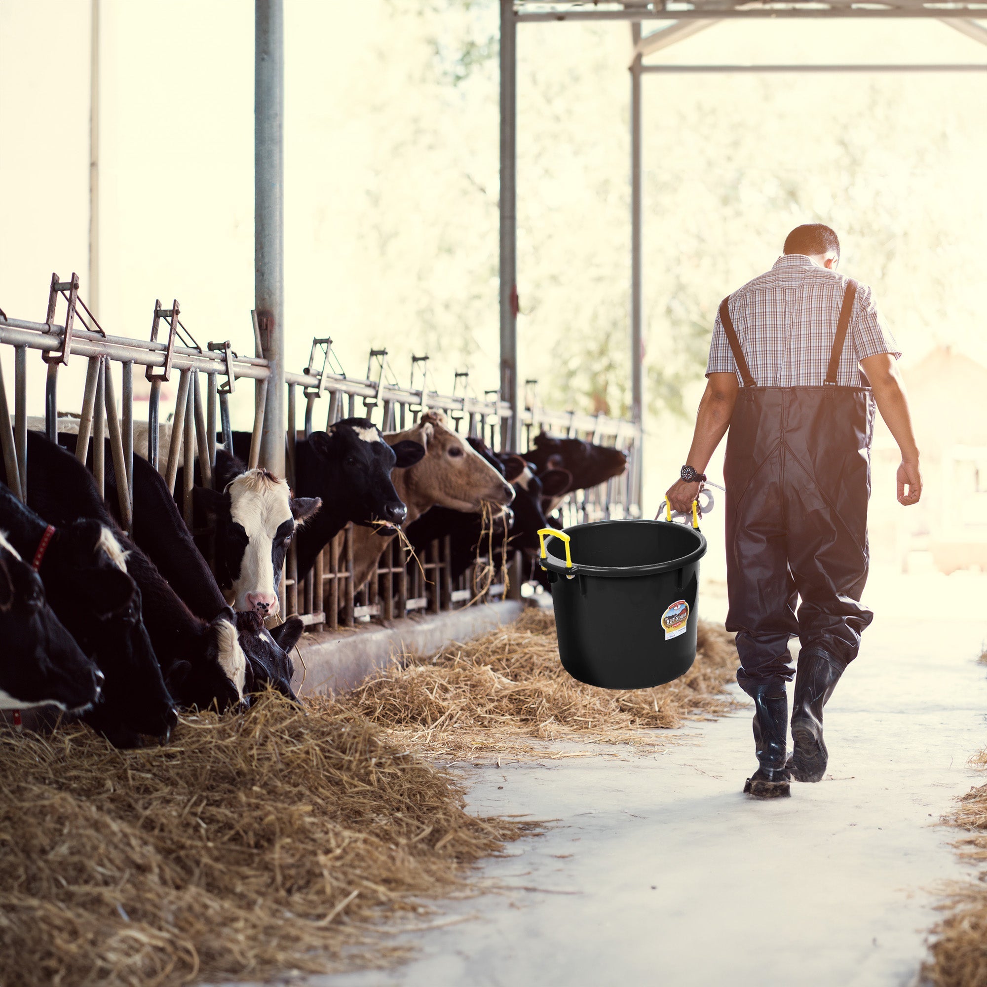 - Multi-purpose 40-quart plastic tote bucket ideal for mucking, barn cleanup, and gardening