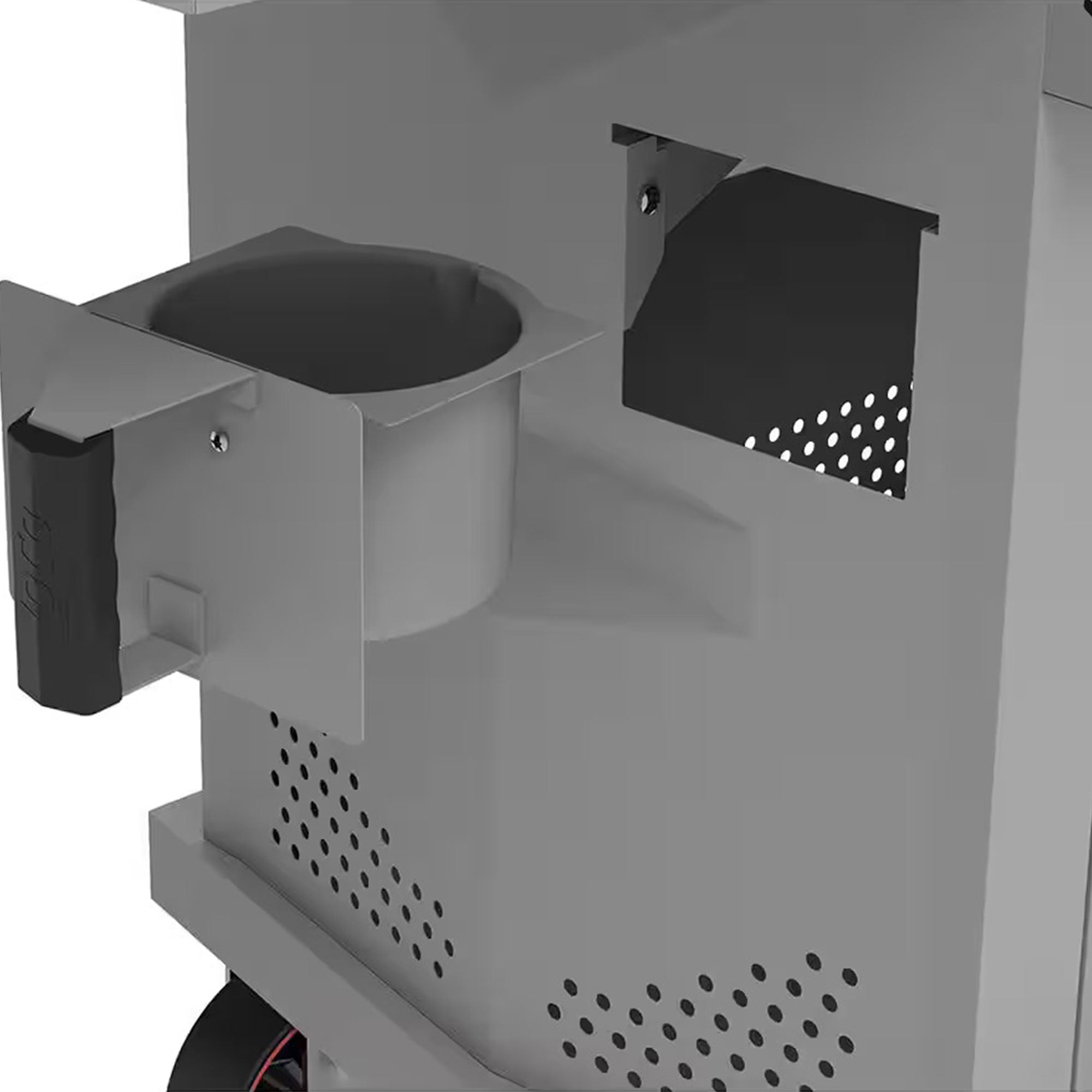 - Grill has built-in side shelves, 2-folding side trays, a full tank enclosure, a double-walled lid, and an adjustable cooktop leveling system