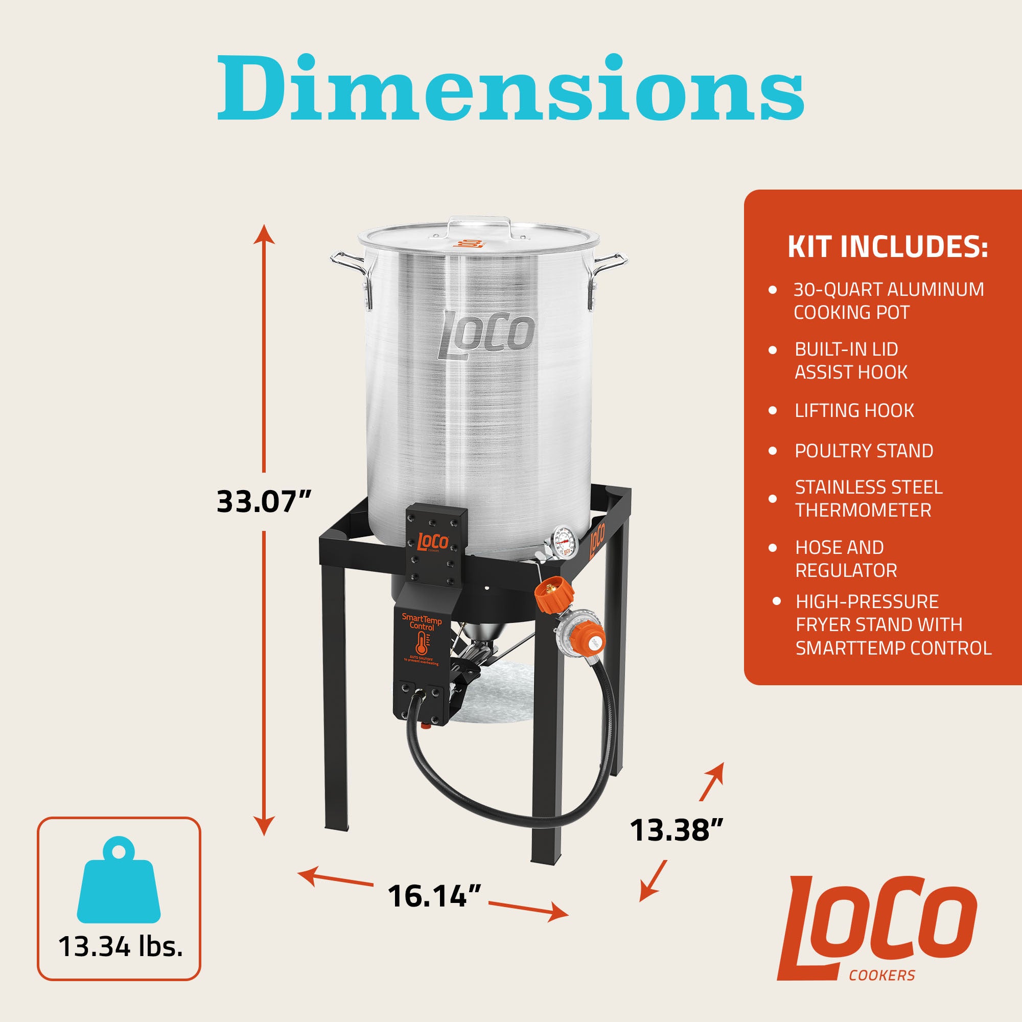 Get ready to impress your guests on any occasion with the Loco Cookers 30-Quart Propane Manual Ignition Aluminum Cylinder Turkey Fryer.