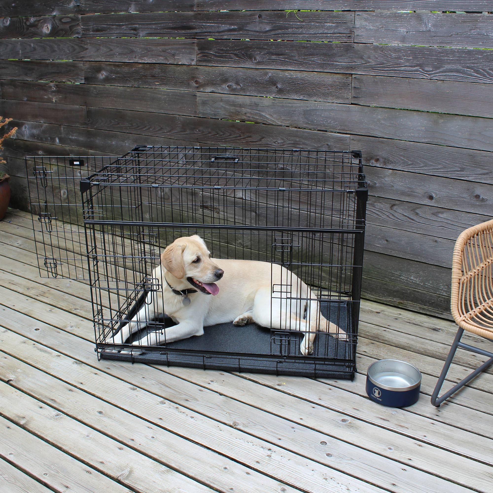 - Large, 42-inch dog kennel is an ideal crate to hold your dogs and keep them protected while outdoors with a dog-safe lockable gate latch