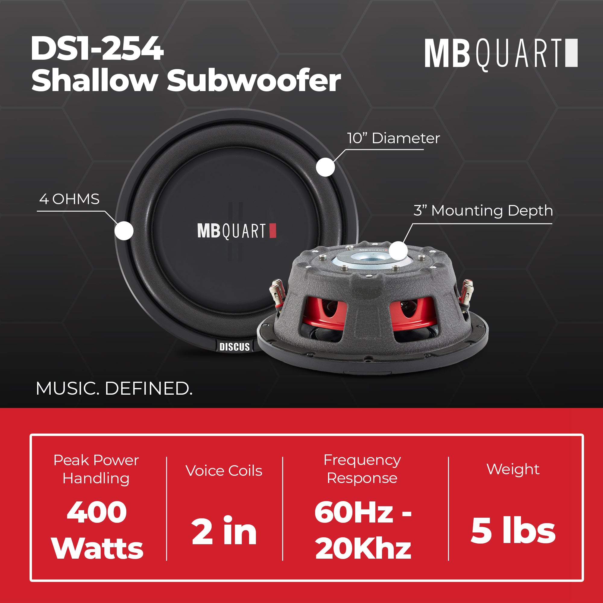 MB Quart DS1-254 200 Watt 4 Ohm 10 Inch Shallow Slim Subwoofer for Vehicles
