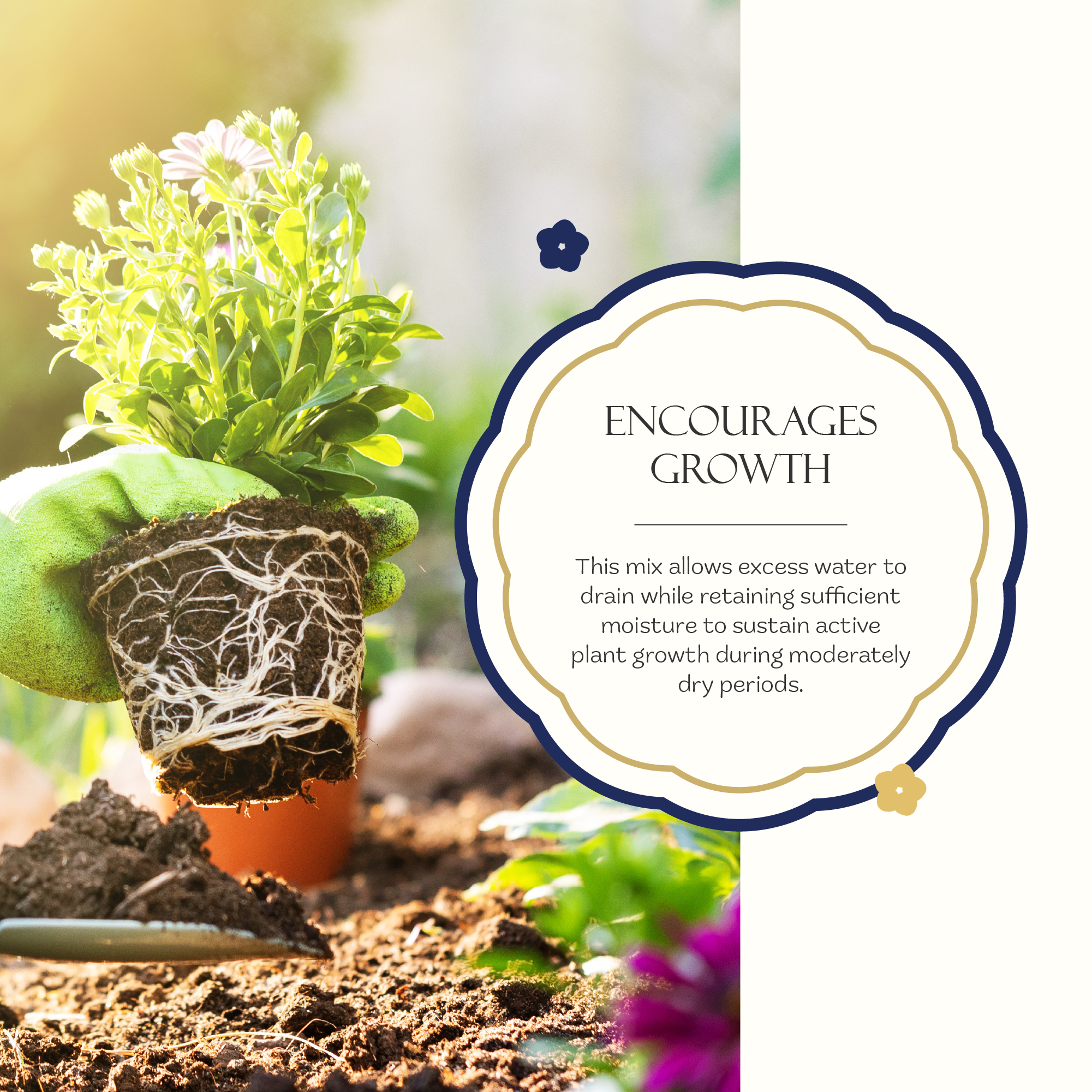 - Potting soil designed to retained sufficient moisture to sustain active plant growth during moderate dry spells