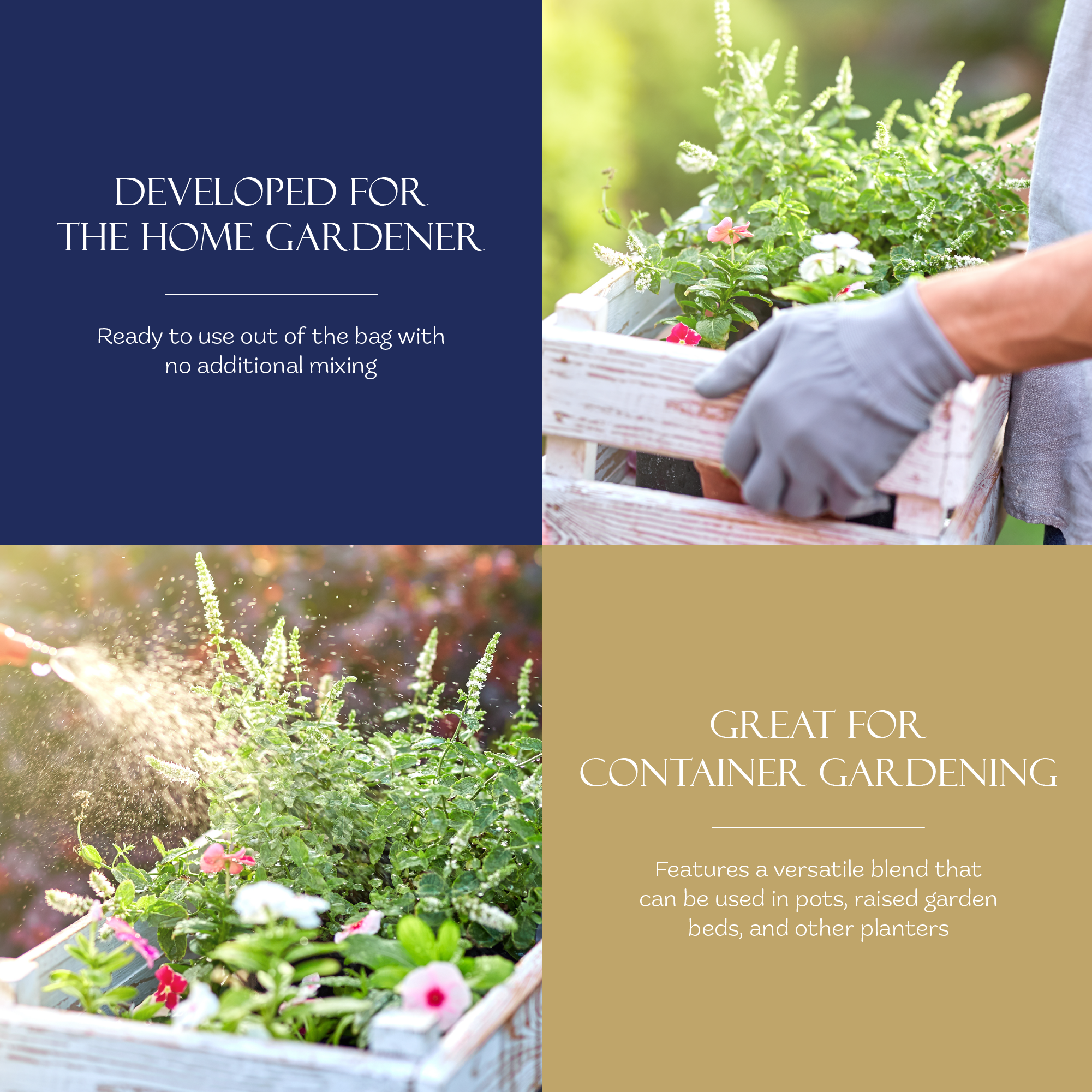 This premium potting soil mix can be used for a variety of planters, pots, and other containers. The all-purpose potting soil blend features advanced, proven ingredients like rick dark reed sedge peat. The blend ensures successful growth for vegetables or flowers in containers or raised garden beds.