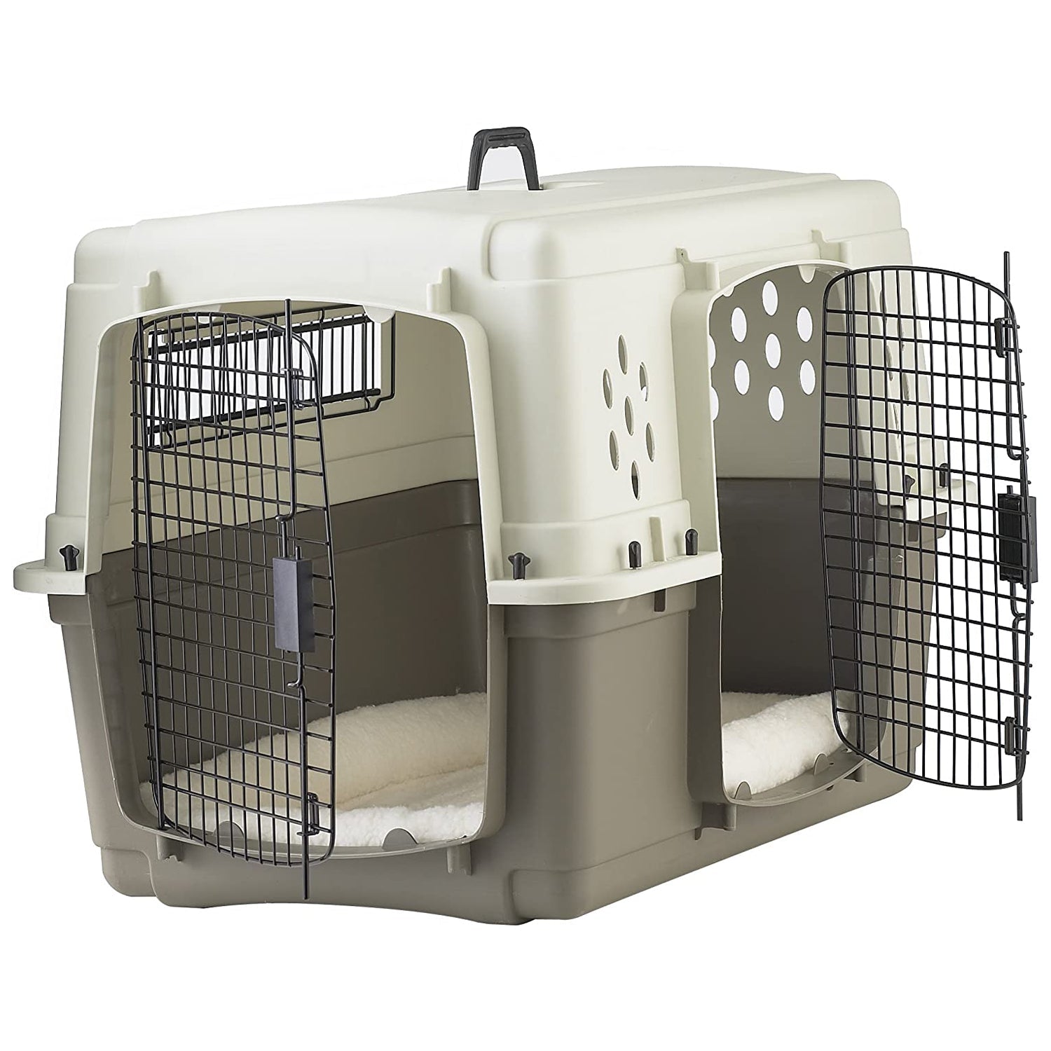 House man's best friend whether on the go or in the backyard. For a safe, secure, and stress-free vacation with your pet, give your travel partner the adventure of a lifetime in the Hard-Sided Double-Door Travel Crate from Miller Manufacturing Company.