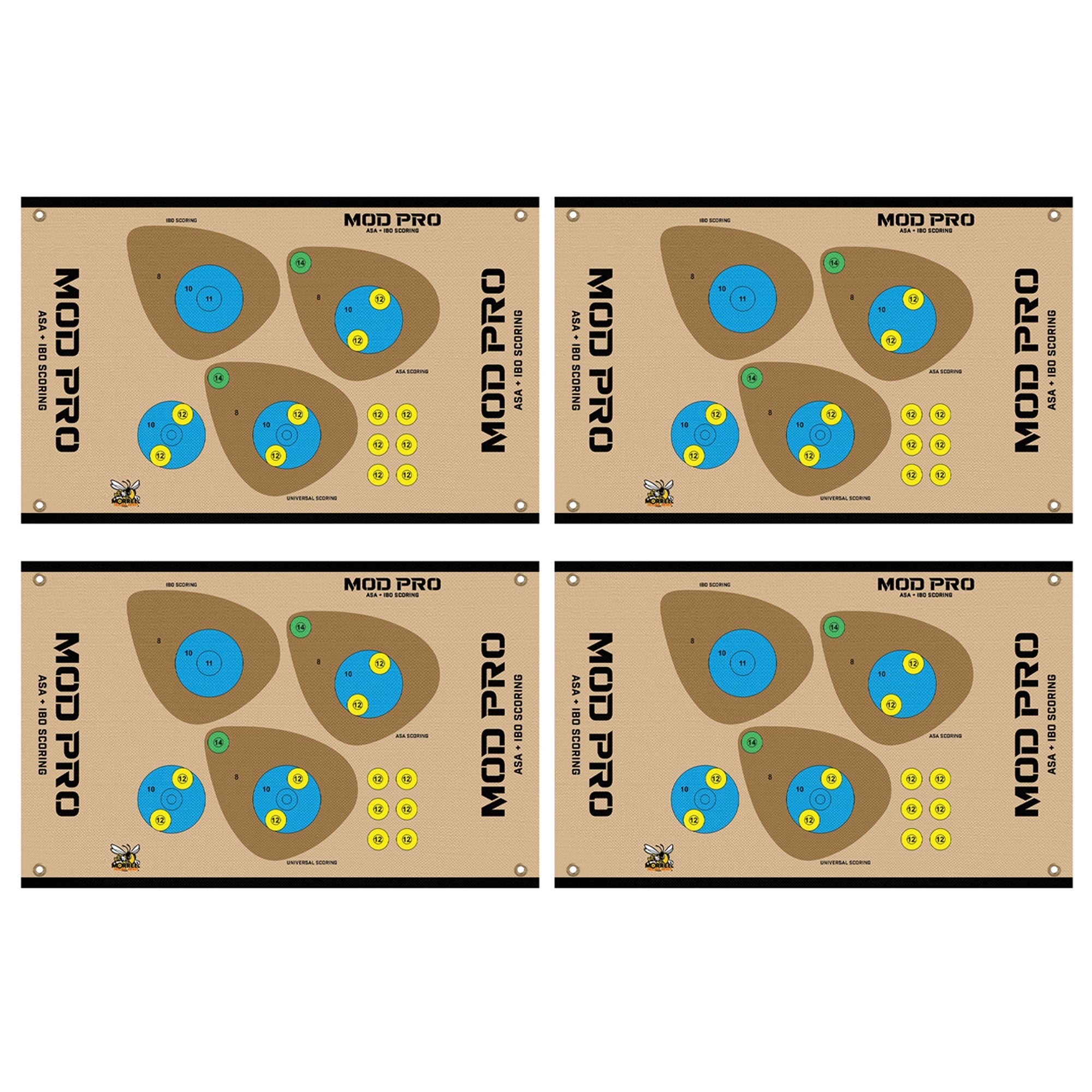 Morrell Yellow Jacket MOD Pro ASA & IBO Shooting Bullseyes with Scoring, 4 Pack