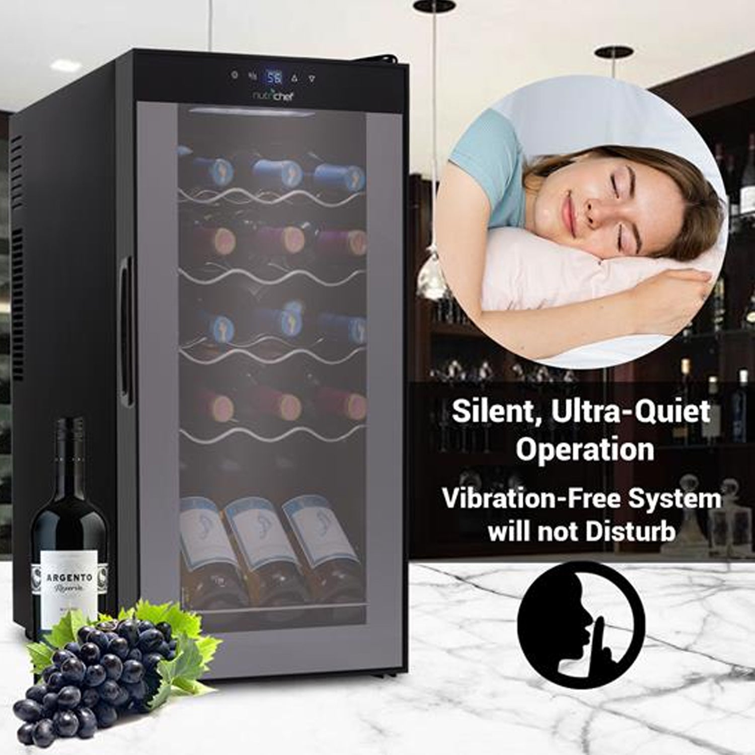 Keep your cabernets, merlots, chardonnays, and rieslings at the perfect temperature for long-term storage and immediate enjoyment. The NutriChef Digital Electric 15 Bottle Thermoelectric Wine Chiller Cooler is a compact and spacious storage option for your kitchen, dining room, pantry, or living room