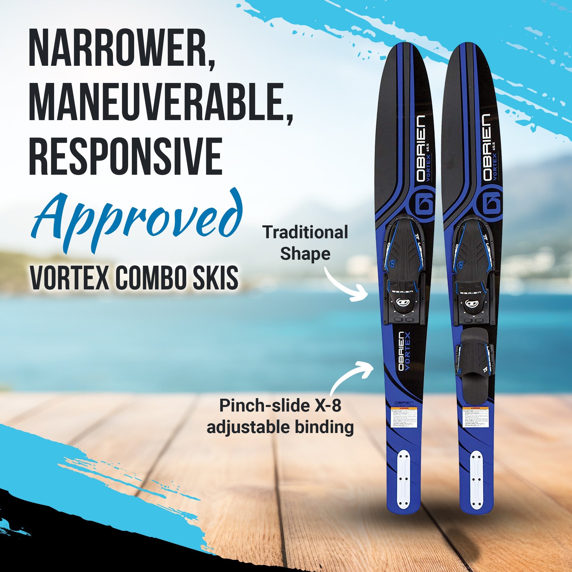 • The O'Brien Vortex Combos provide a wide platform, designed for quick deep-water starts, complimenting your carving turns with ease