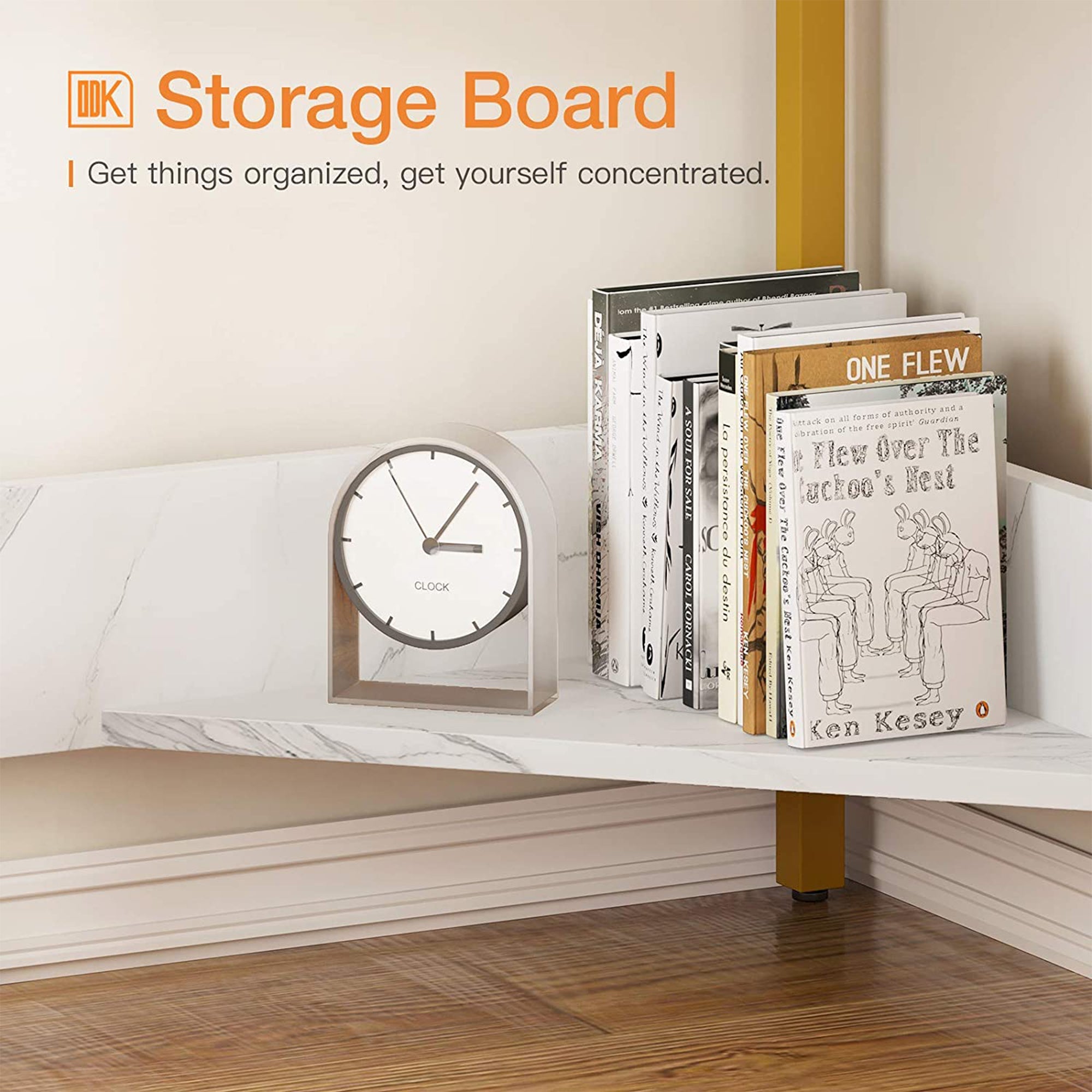 - A lower shelf allows you to store books and crafts or can be used to display your favorite photos, plants, and more
