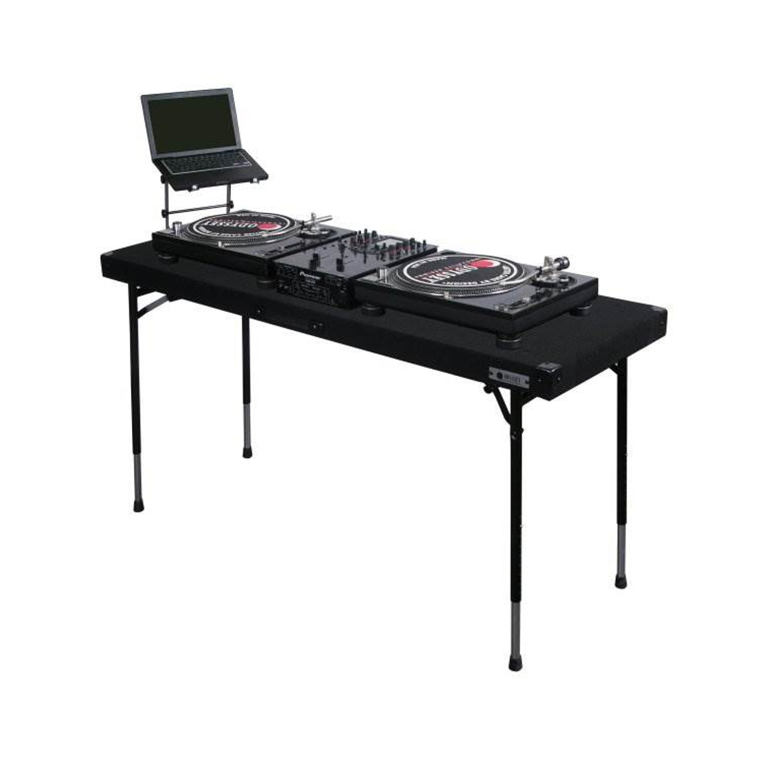 Odyssey 60" x 20" Work Surface Carpet DJ Table with Height Adjusting Legs, Black