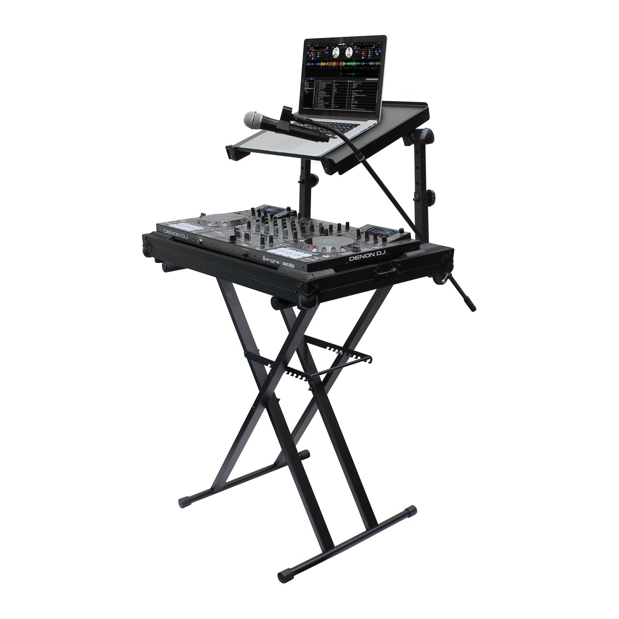 - DJ stand combo pack features a convenient stand to hold your equipment, laptop, and mic in place