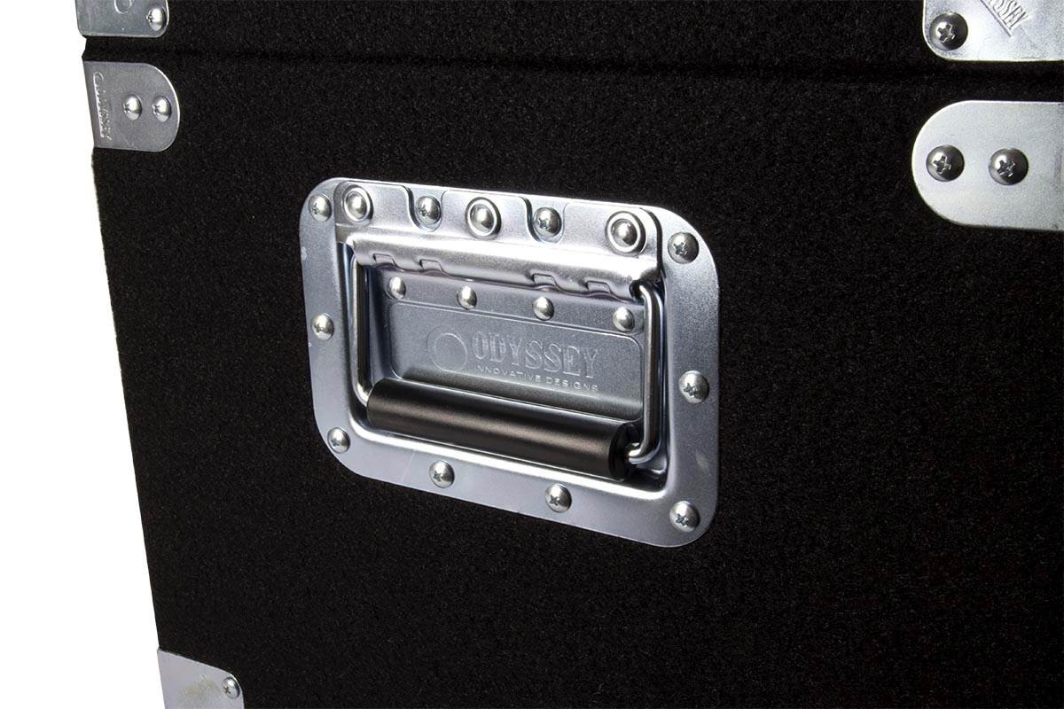 Store all your classic vinyl with this **Odyssey Pro DJ Case**. The case holds up to 200 LP records within 2 rows. Its detachable lid allows for easy access to your vinyls, and it's reinforced with flat steel corners. This Odyssey Pro DJ Case is easy to carry and has a locking draw bolt latch that will help keep your tunes safe.