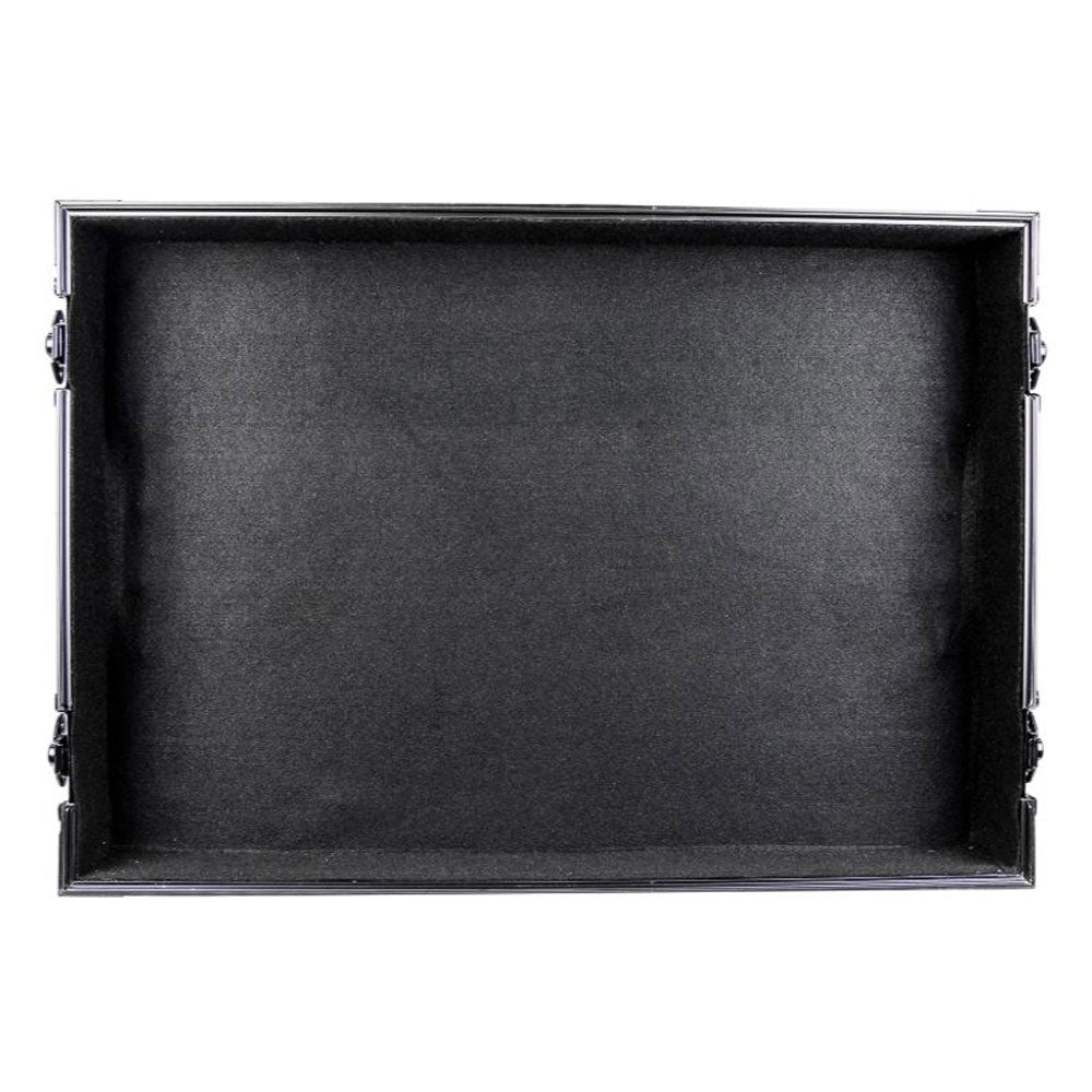 Made with heavy-duty ball corners and a 3/8-inch ply construction wall to ensure equipment travels safely. There is plenty of cable management with rear and bottom portholes and features removable front access mixer compartment panel. The bottom rubber feet help avoid the equipment from sliding. This flight case has plenty of room with the full-width glide laptop platform with 2 cable portholes. It also features removable front and rear access panels.