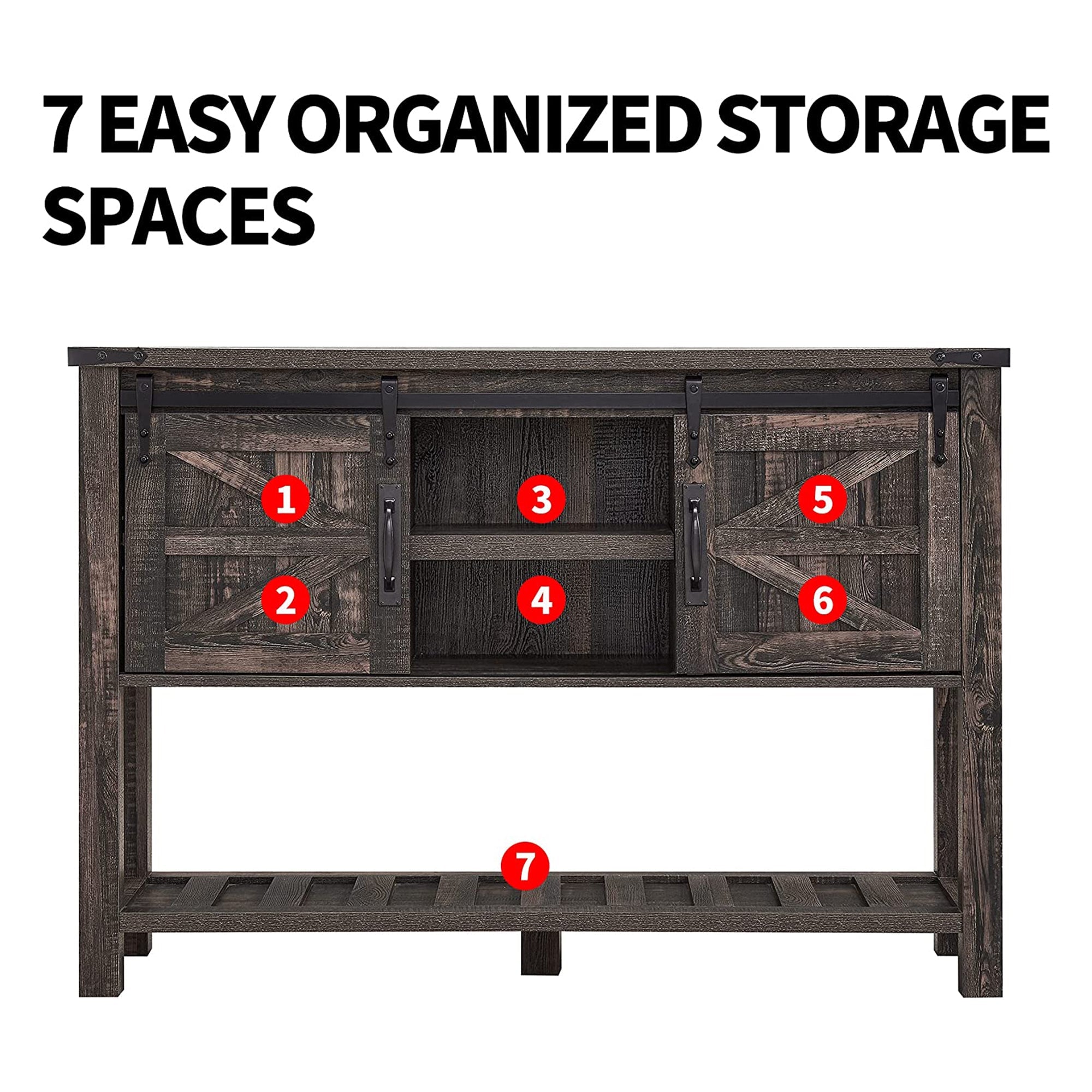 OKD Farmhouse Console Entryway Table with Sliding Barn Doors, Dark Rustic Oak