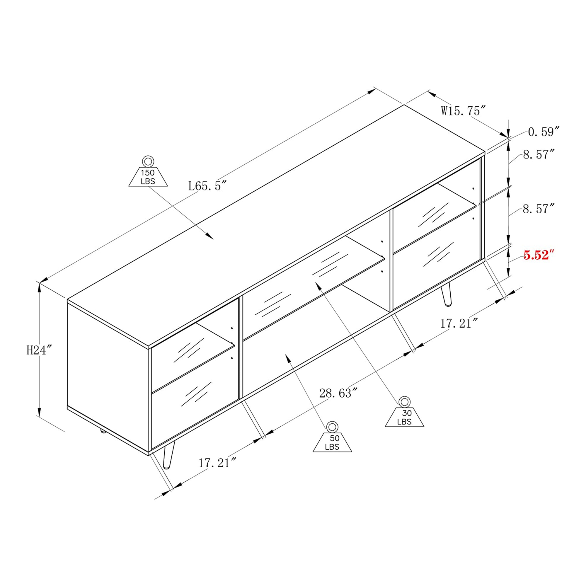 The top shelf measures 15.75 by 65.51 inches, making this stand ideal for displaying television sets up to 75 inches across. With stylish, modern construction, this TV stand will make the perfect statement piece in living spaces, entertainment rooms, or anywhere in your home. The cabinet is easy to assemble before use and comes with all instructions and hardware.