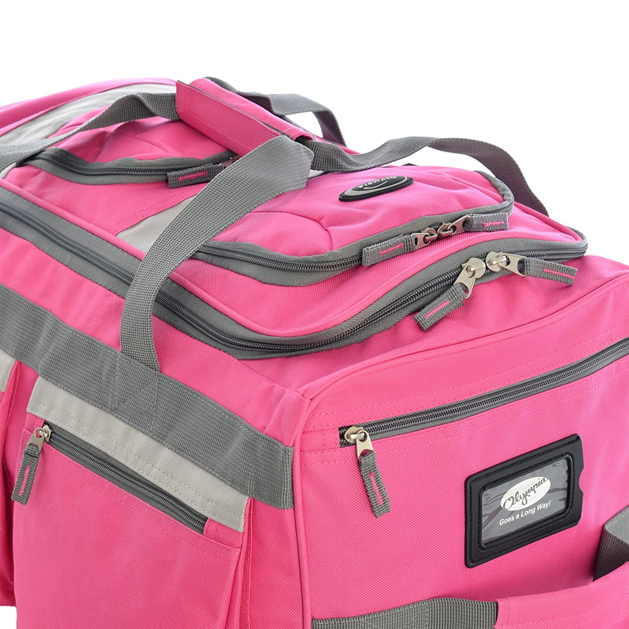 Olympia 29 Inch 8 Pockets U Shaped Rolling Duffel Bag with Handle, Hot Pink