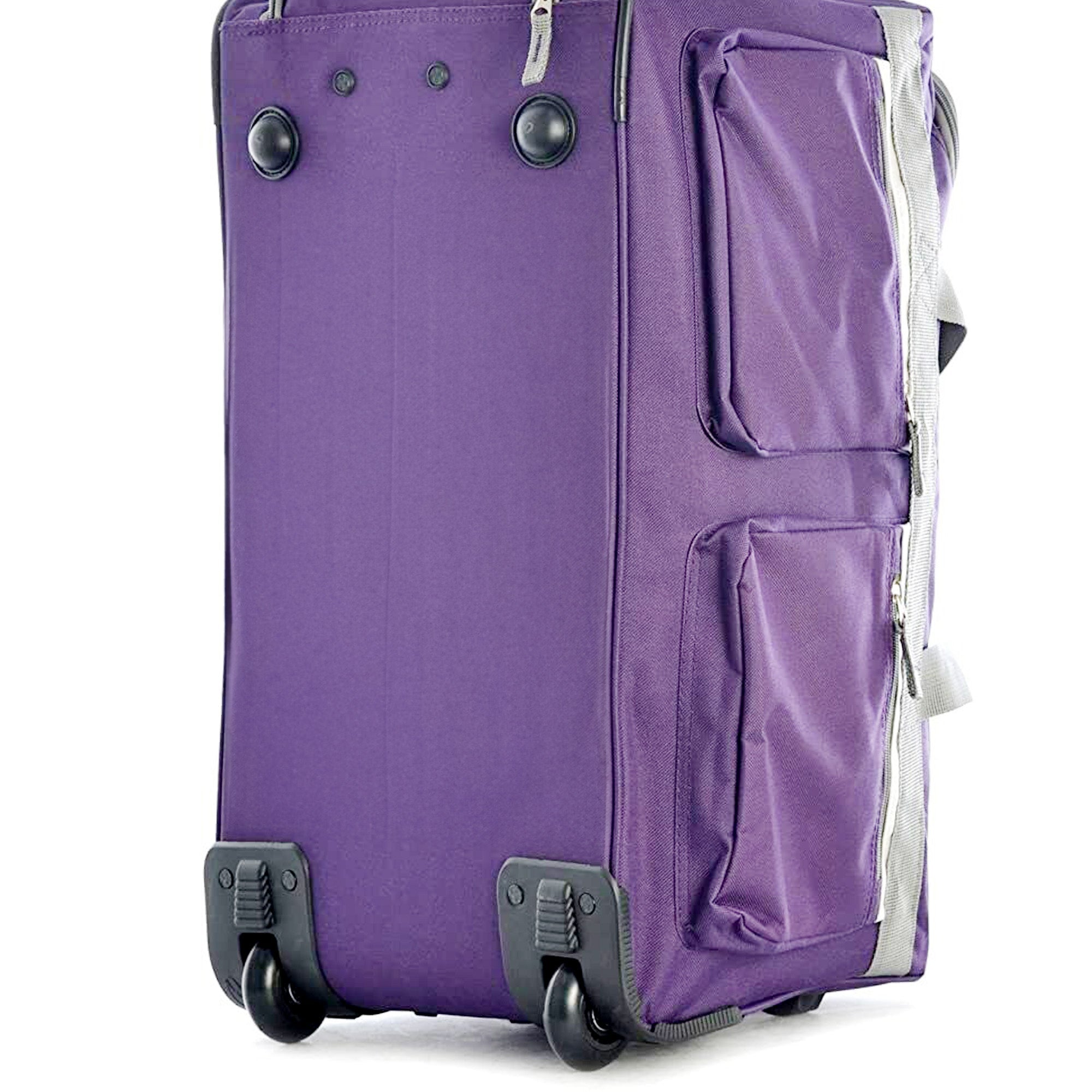 Olympia 33 Inch 8 Pocket U Shape Rolling Duffel Bag with Handle, Dark Lavender