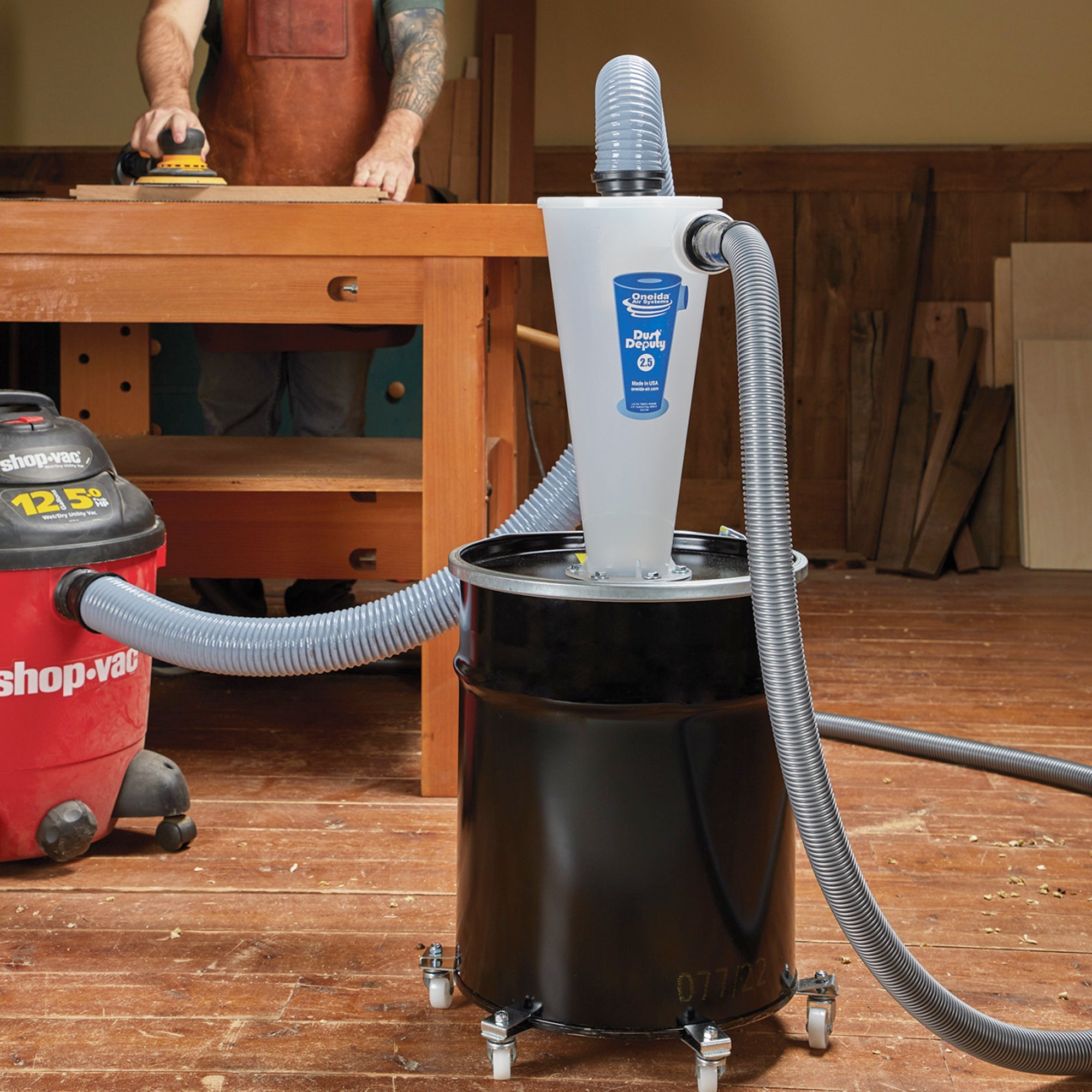 Have you had difficulty looking for screws or smaller items when you're working in your shop with sawdust everywhere? Keep your woodworking space tidy with the Oneida Air Systems Dust Deputy 2.5 Deluxe All-Clear Cyclone Separator.