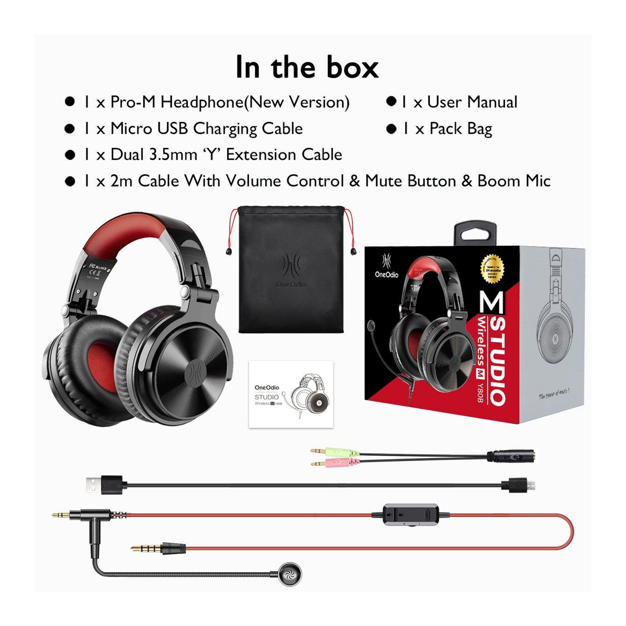 OneOdio Pro M Black+Red Over Ear Bluetooth Wired & Wireless Gaming Headset, Red