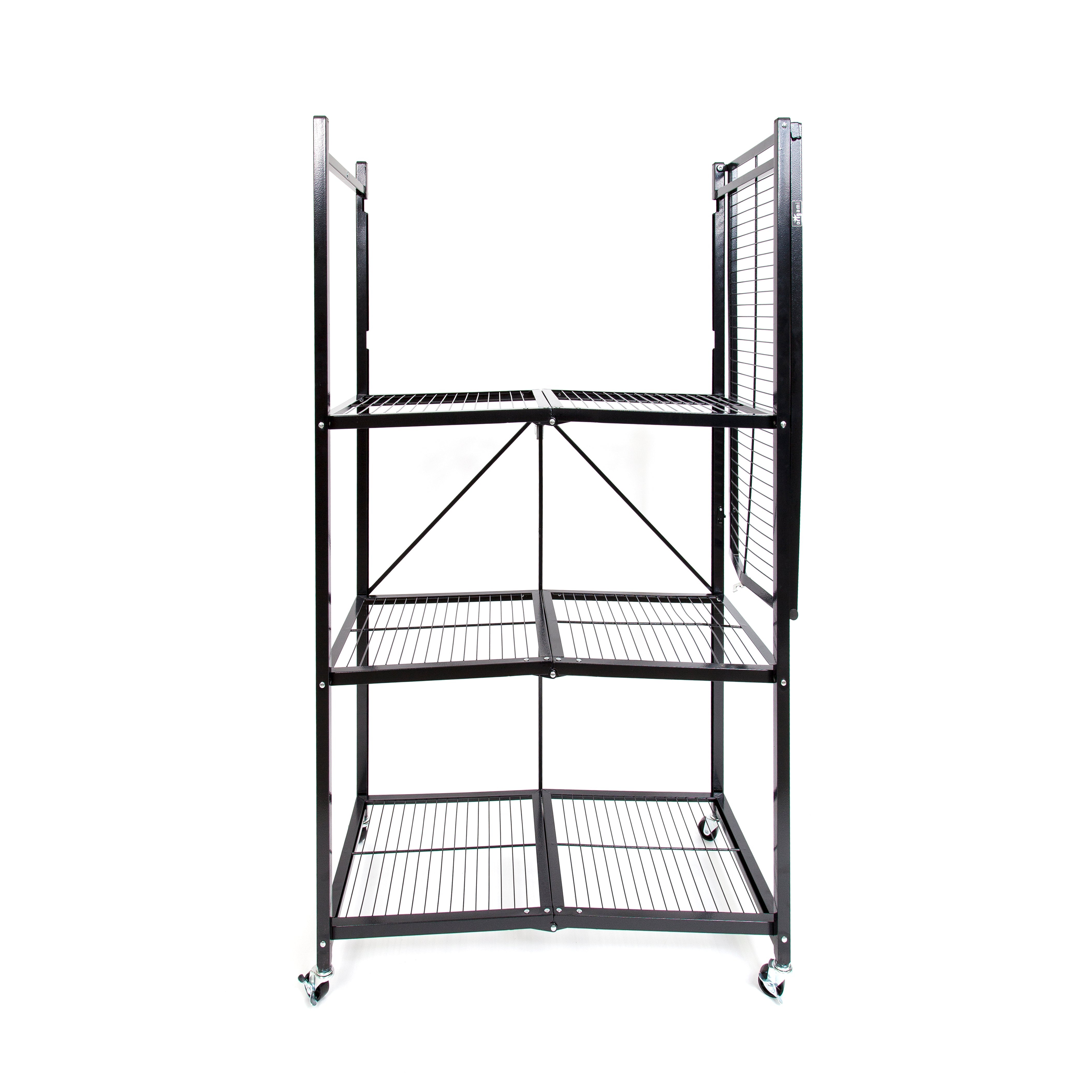 Designed with spacious shelves and made from commercial-grade powder-coated steel, this 4-tiered organization and storage rack ensures optimal storage for your belongings. For added convenience and mobility, the shelving unit includes 4 caster wheels. Without wheels on the rack, this shelf organizer can hold up to 750 pounds (250 pounds per shelf), while it can hold up to 225 pounds (75 pounds per shelf) with wheels. Boasting both durability and optimal functionality, this foldable garage shelving has multiple tiers to accommodate a wide range of household items. This shelving unit is built for convenience and reliable storage, suitable for garages, warehouses, offices, basements, classrooms, and more. Use it for bathroom storage, laundry room organization, as a closet organizer cart, open pantry and kitchen storage, or as a bookshelf in the living room.