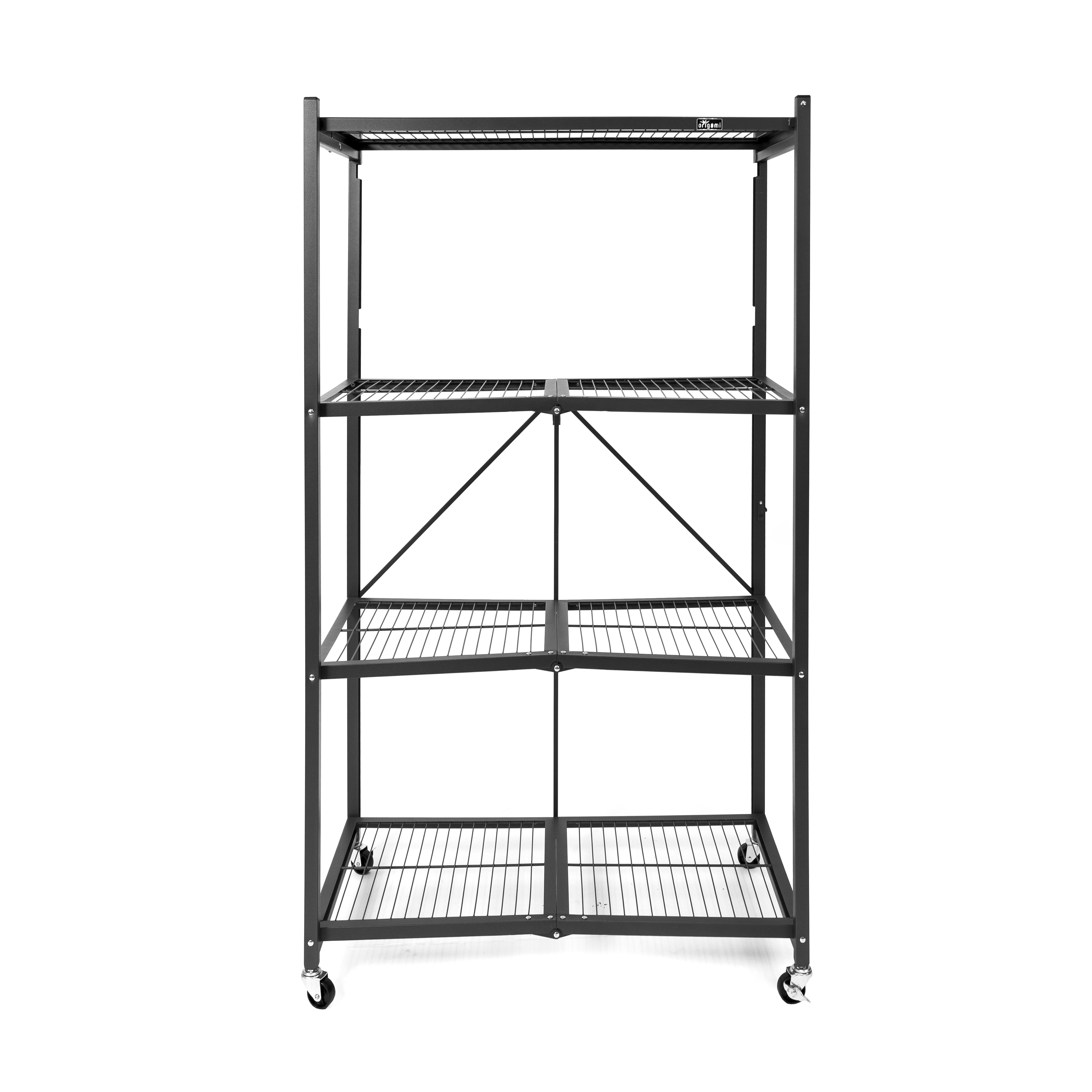 Origami R5-06W Black 4-Wheeled and 4-Shelf Folding Steel Wire Shelving Storage