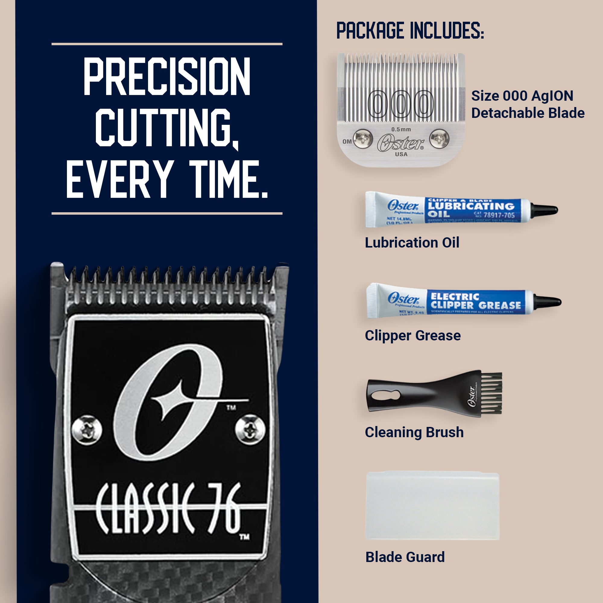 - Includes a size 000 AgION detachable blade for precise cutting and versatile styling options