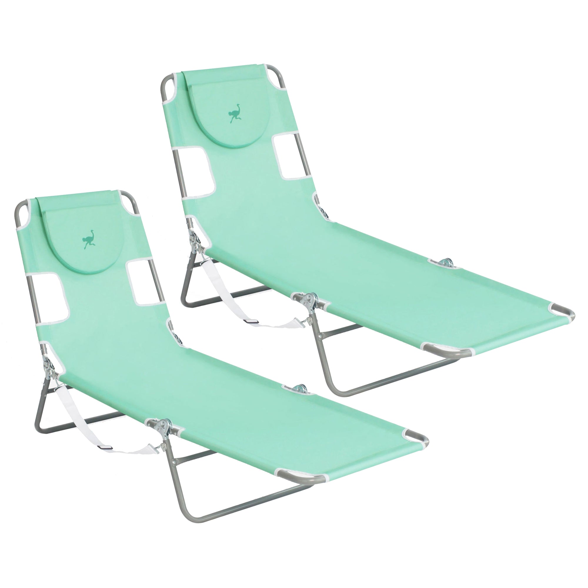 Ostrich Chaise Lounge Folding Sunbathing Recliner Beach Chair, Teal (2 Pack)