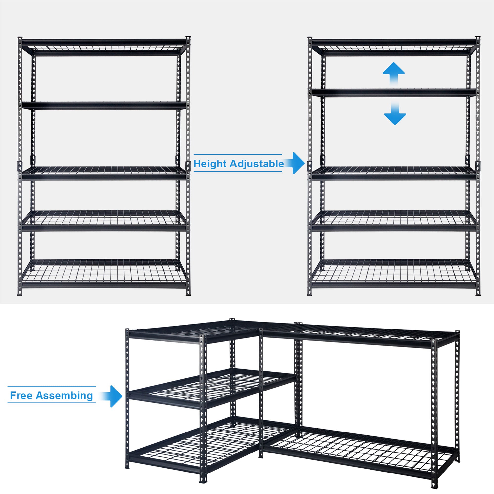 - Quick and easy to assemble; Made with an innovative bolt-less assembly system makes it easy for you to snap the racks safely together with no bolts or screws required