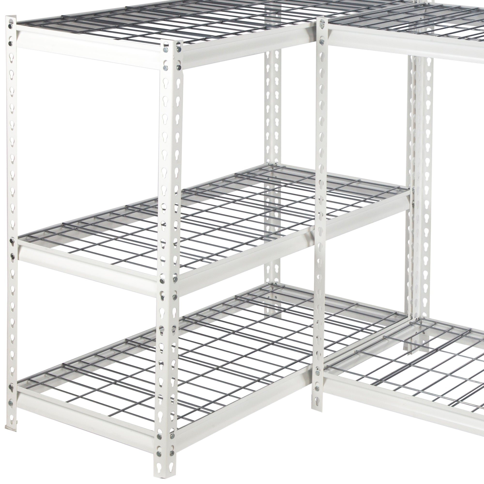 • Quick and easy to assemble; Made with an innovative bolt-less assembly system makes it easy for you to snap the racks safely together with no bolts or screws required