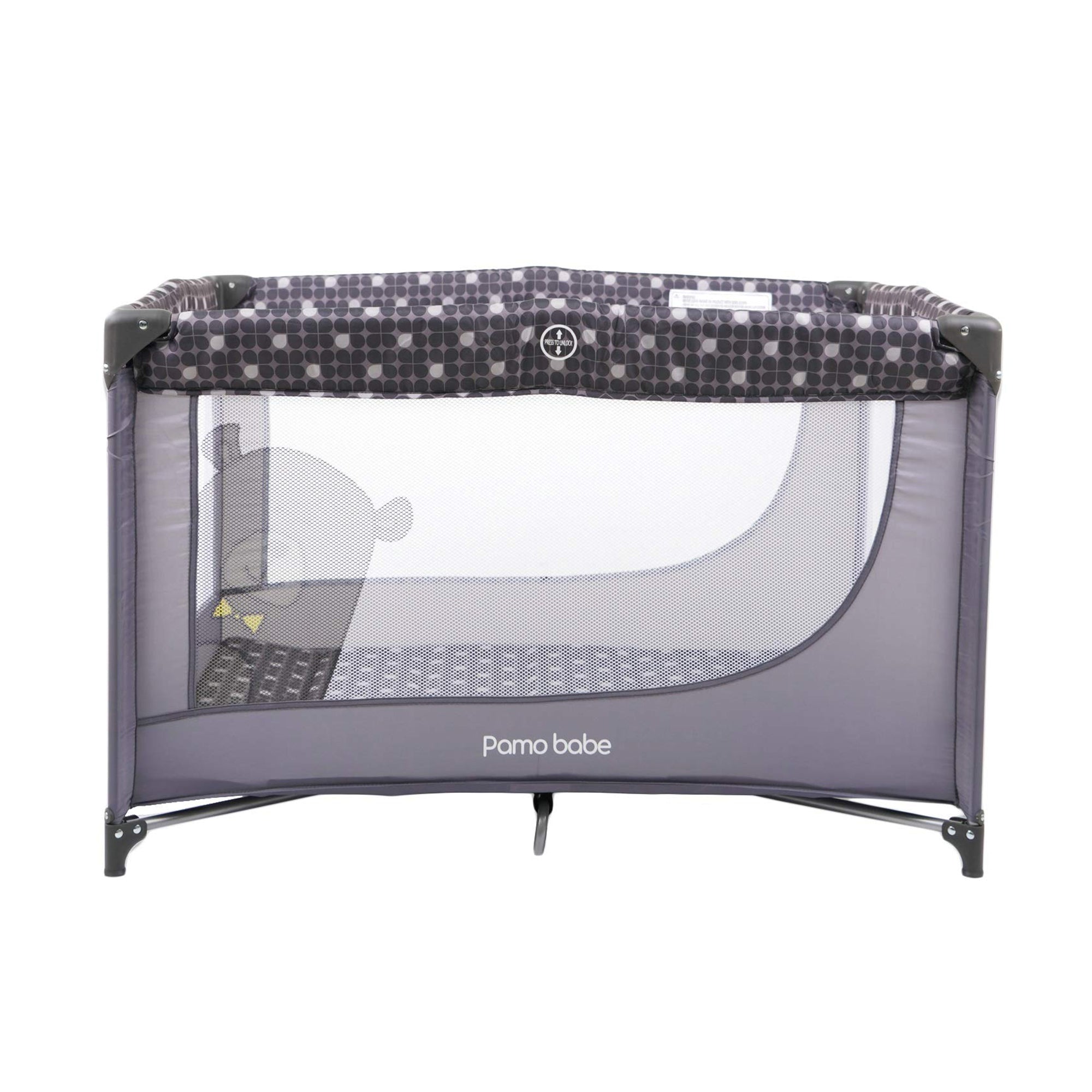 Pamo Babe Portable Crib Enclosed Baby Playpen with Mattress and Carry Bag, Gray