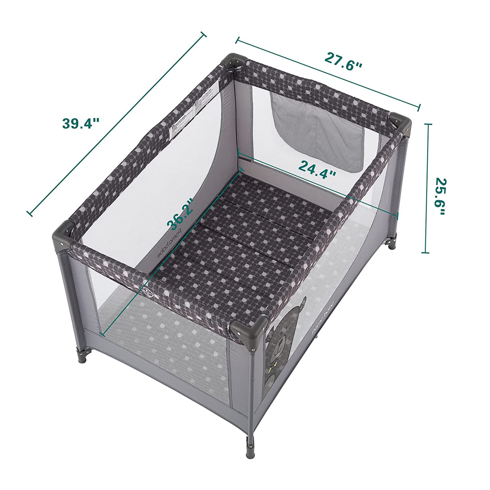 Pamo Babe Portable Enclosed Baby Playpen Crib with Mattress and Carry Bag, Gray