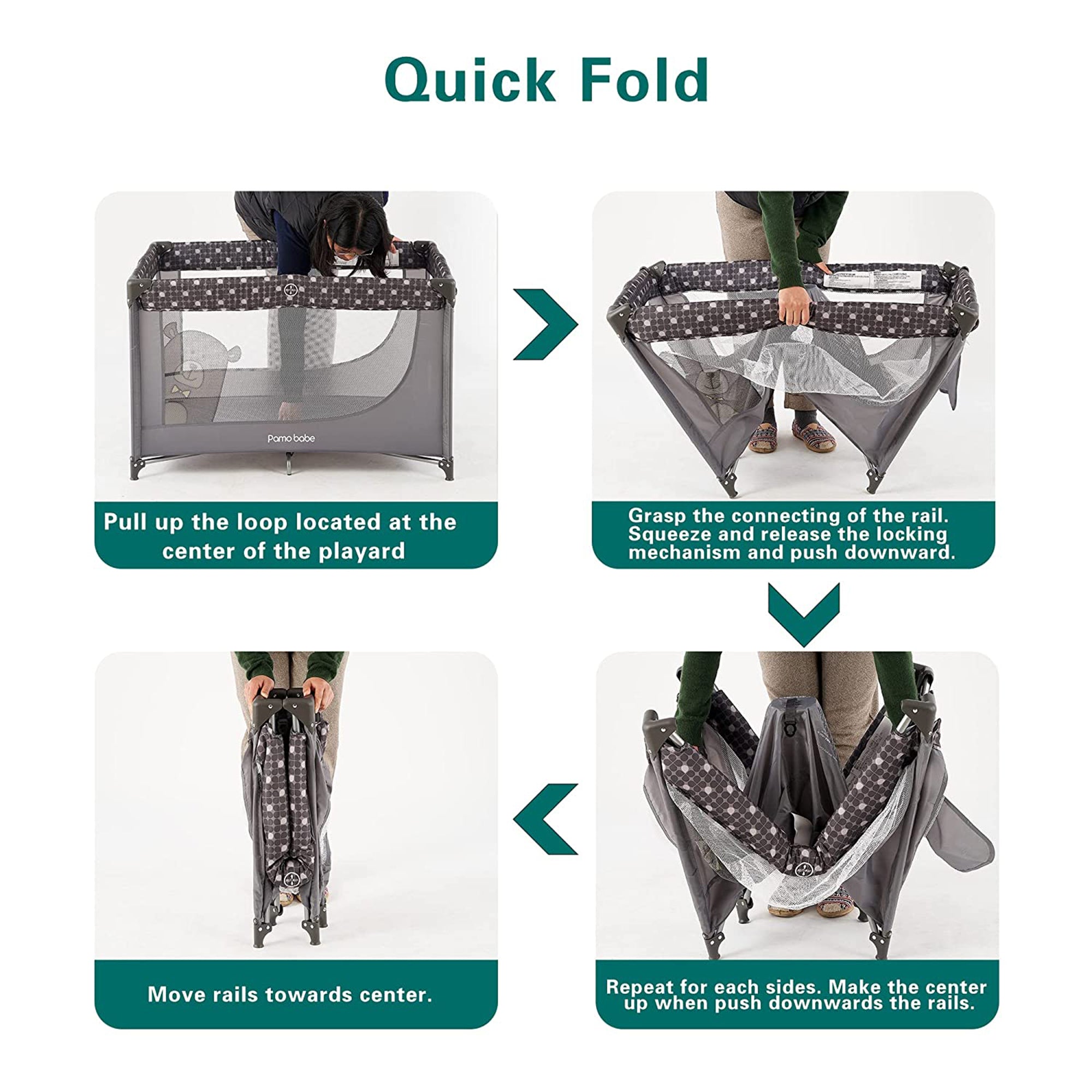 Lull your baby to sleep and give yourself some much-deserved rest using the Pamo Babe Portable Enclosed Baby Playpen Crib with Mattress and Carry Bag in Gray.