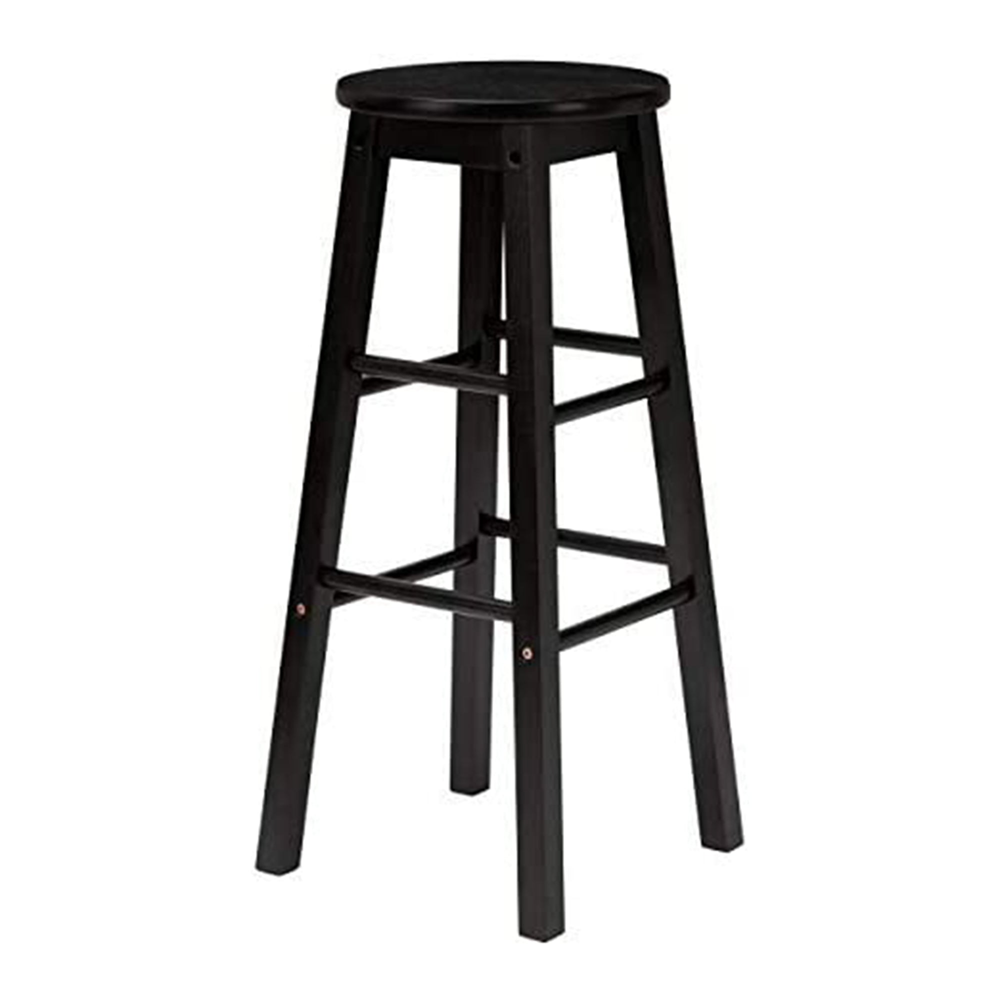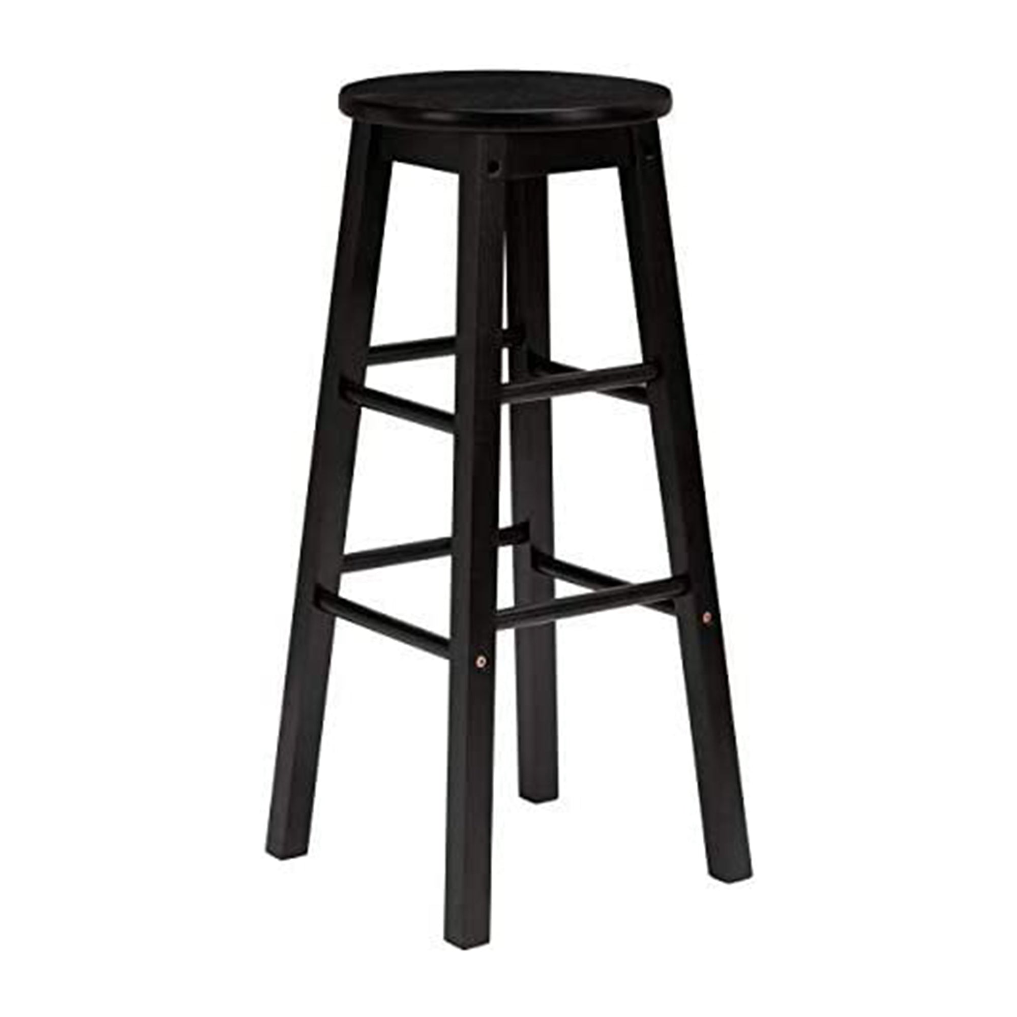 PJ Wood Classic Round Seat 24 Inch Kitchen and Counter Stools, Black (4 Pack)