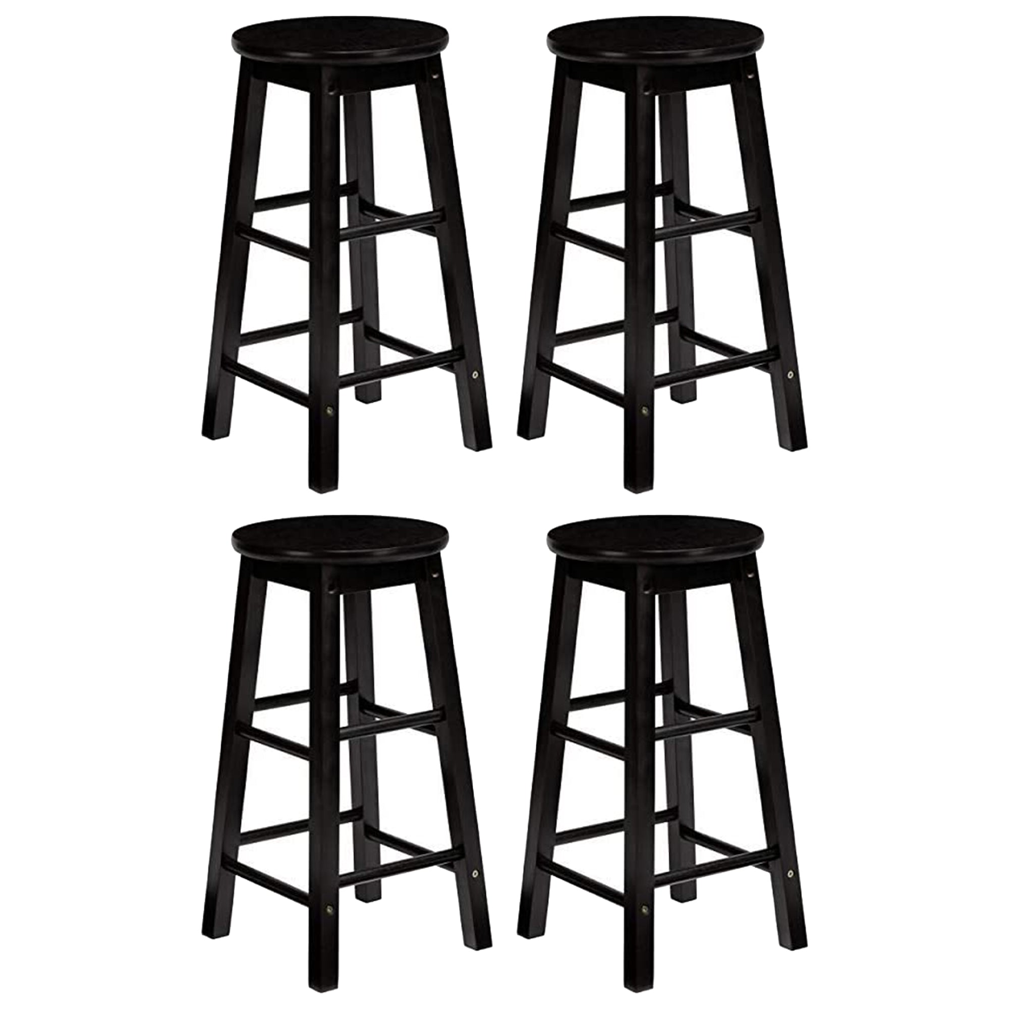 These stools are ideal for all occasions, whether paired with a small dining space that you already have, adding seating to your countertop, or casual entertaining space. Constructed from sturdy, durable wood, this set of 4 bar stools features comfortable, round, backless seats that stand 29 inches high, with a classic and modern design that fits with any existing decor. With 4 well-balanced, square legs and 8 built-in bars for your feet, each stool can withstand up to 225 pounds. Good for eating, working, entertaining a few guests, or just sitting around, these stools are a great addition to that new bar, counter height table, or working area. Light assembly is required before you can use these bar stools, with all required hardware included.