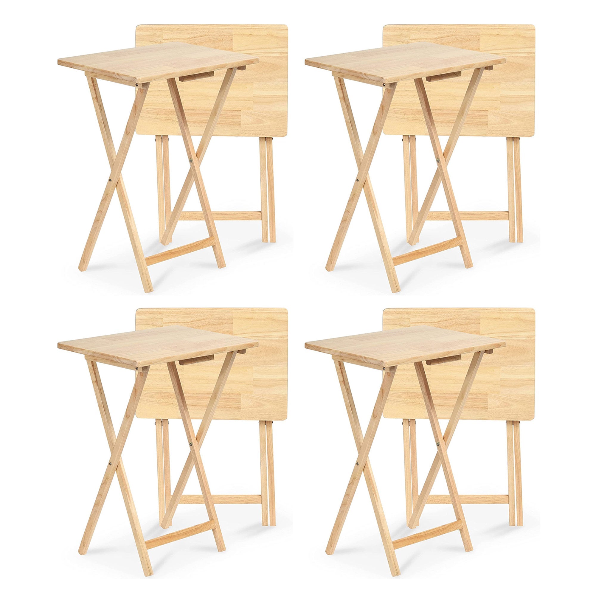 PJ Wood Folding Portable TV Snack Tray Table with Natural Finish (8-Piece Set)