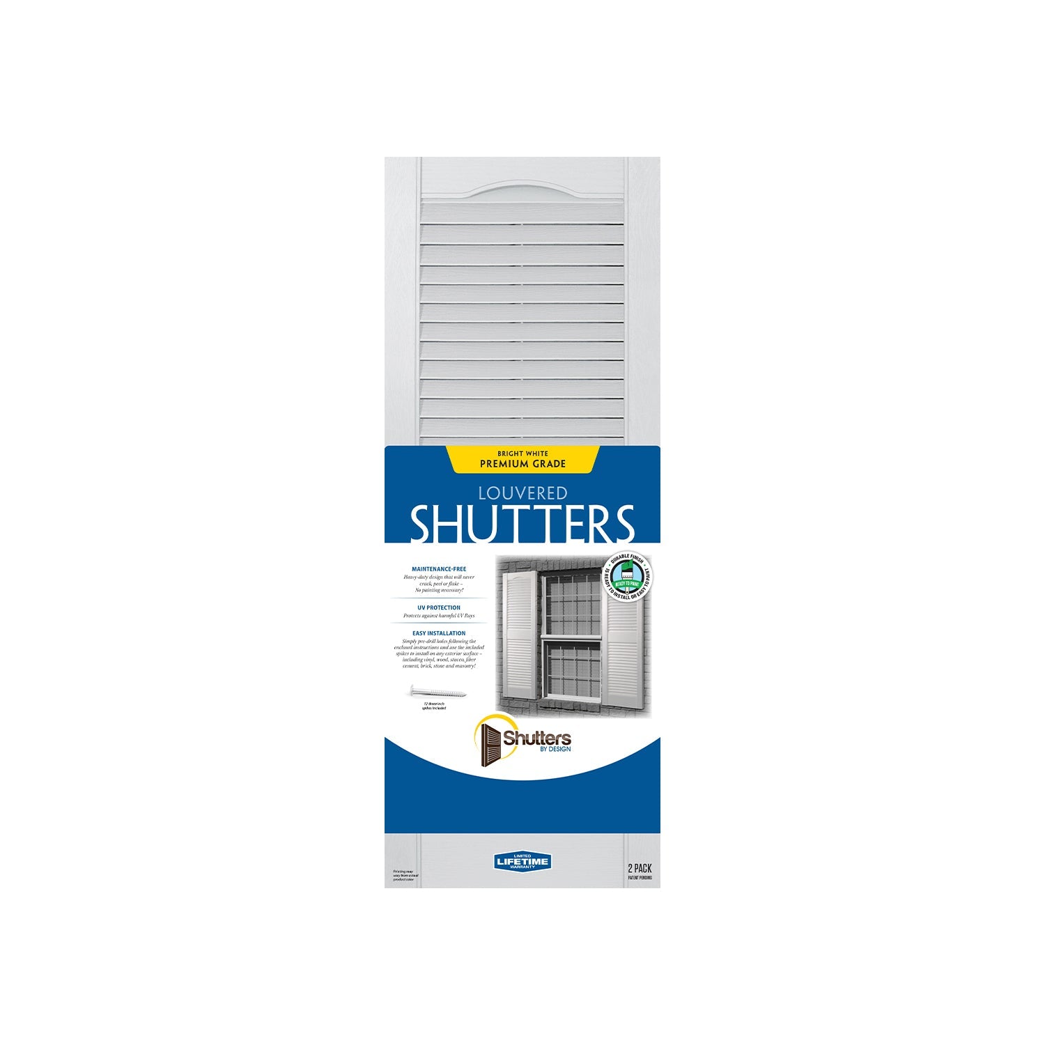- Maintenance-free, ready to hang, no painting necessary, and color-matched shutter spikes included