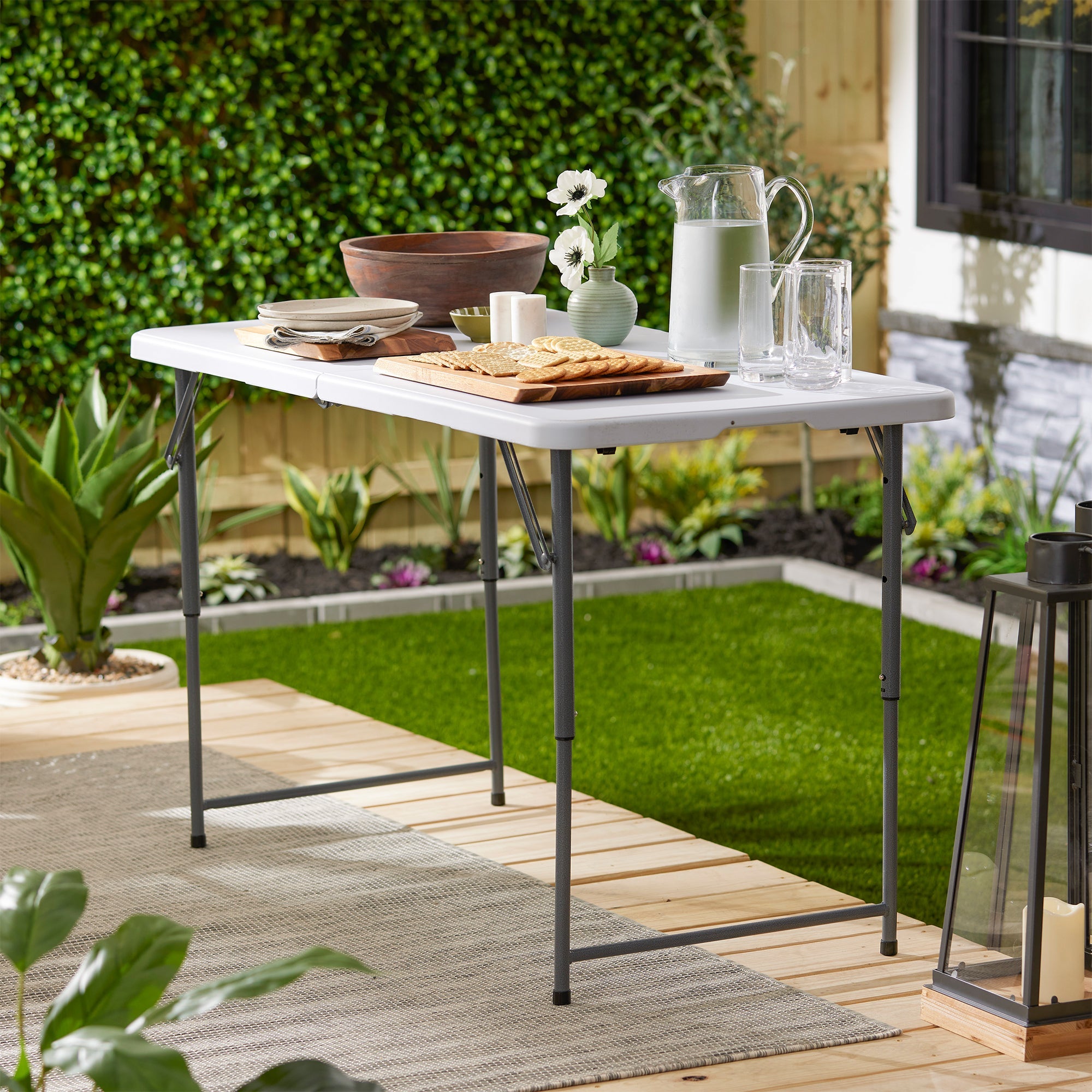 • Gather around the 4-foot utility tables, great for outdoor dining or entertainment, family reunions, and parties, or as a work table in the basement or garage