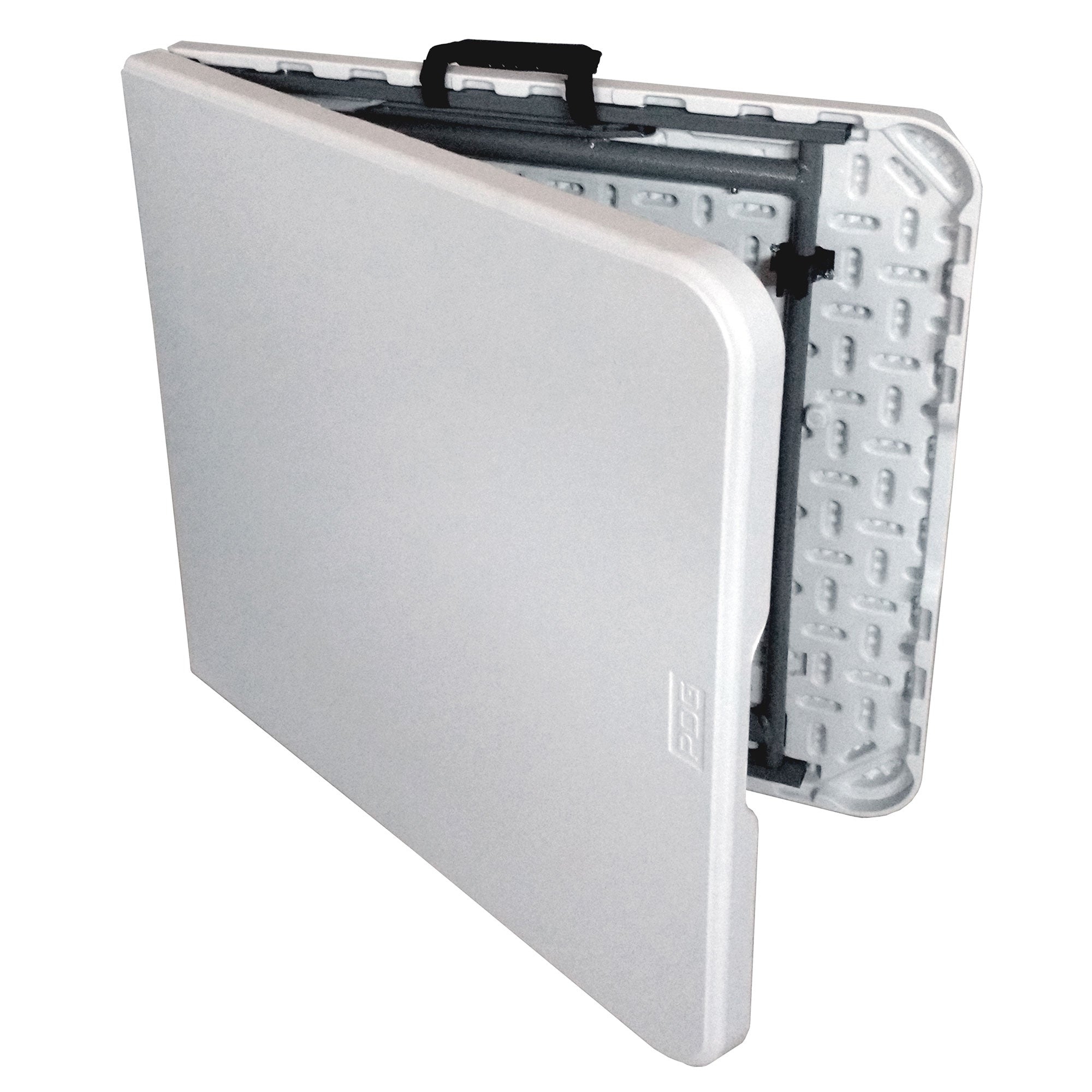 • Long tables fold in half with a convenient carrying handle for simple transportation and compact storage