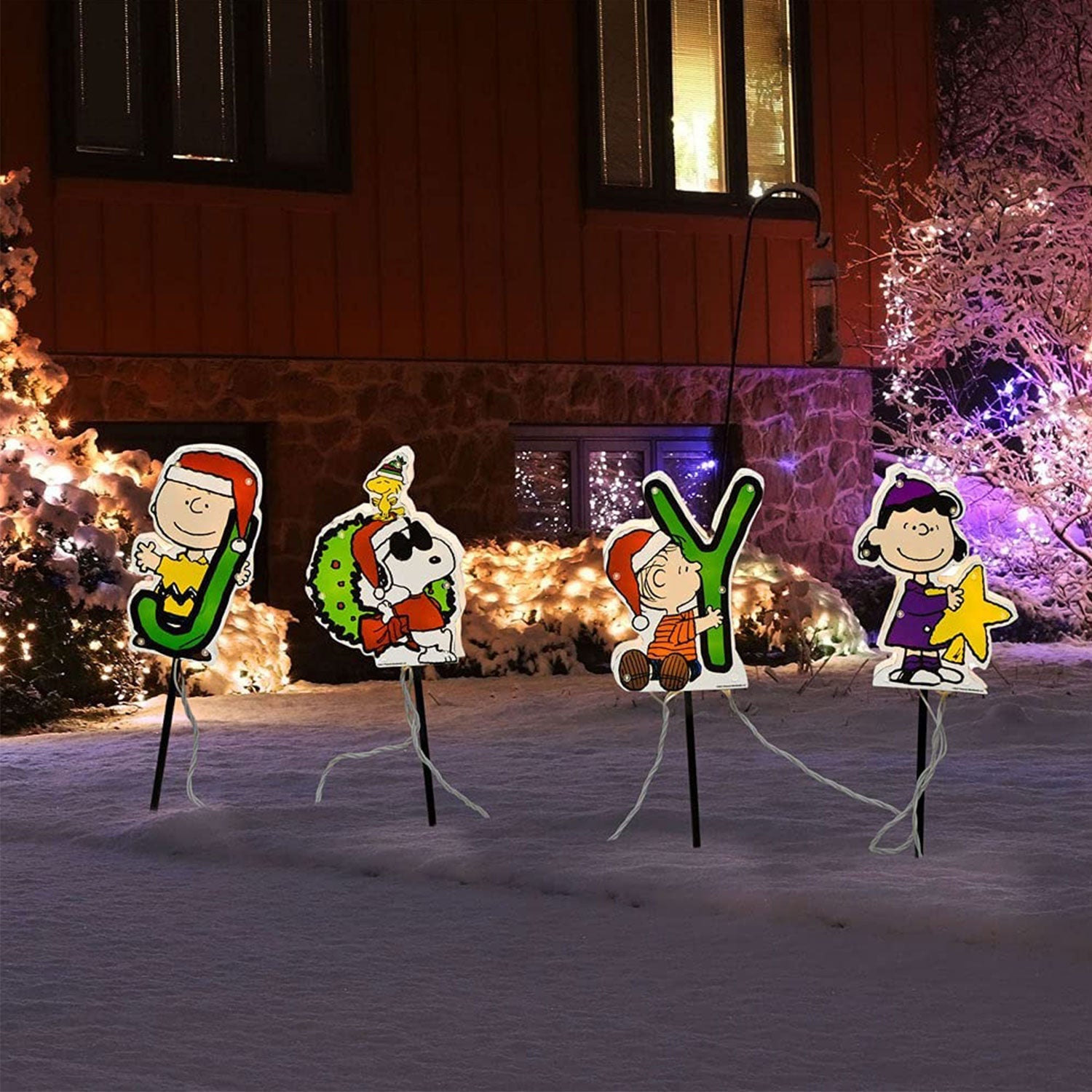 • Officially licensed 24-inch Peanuts Snoopy and 8-inch Joy Christmas pathway markers fill your lawn with festive cheer this holiday season