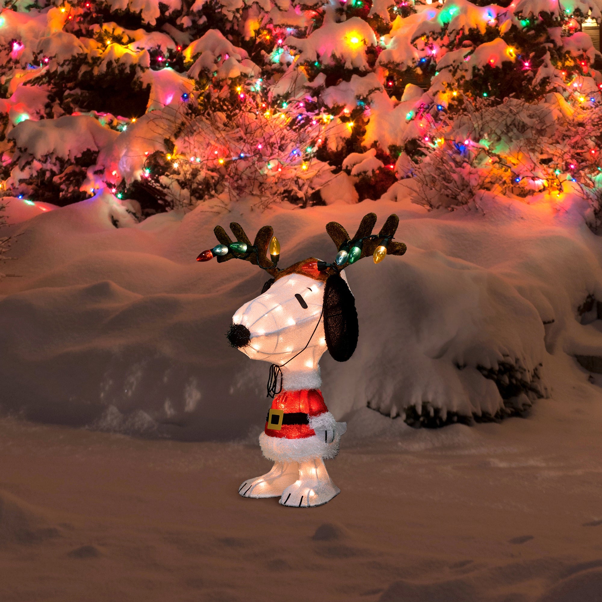 - Celebrate the season with the officially licensed Peanuts Snoopy in Santa Coat and Antlers Christmas decor, designed to fill your house and lawn with festive cheer