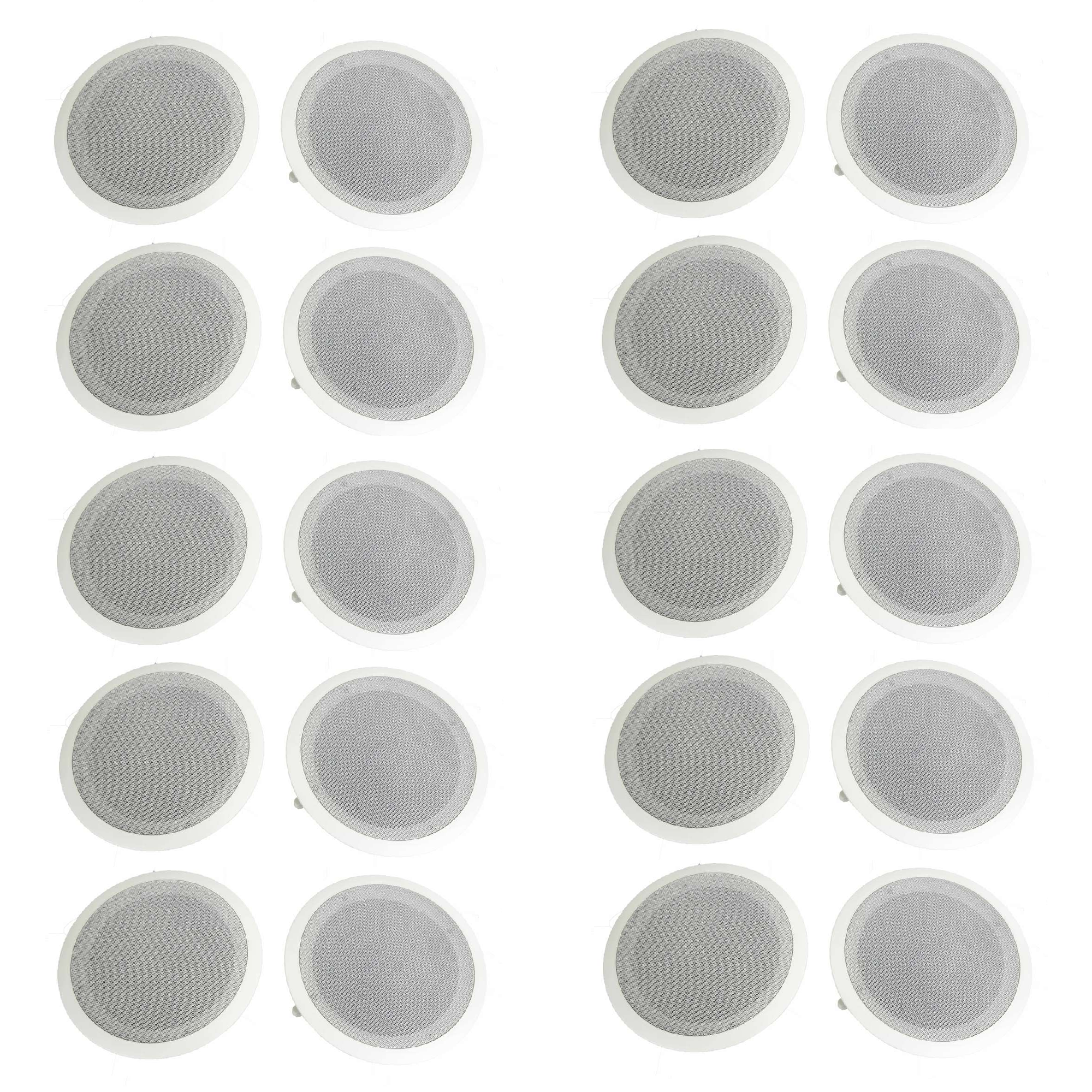 The 10-Pack of Pyle PDIC speaker systems deliver stereo sound to any room in your home or office without cluttering floor space. This pair of 8'' speakers can be used for in wall and in ceiling applications as they mount flush for a clean look. Perfect for custom installations, the PDIC series speakers feature polymer dome tweeters, impressive power handling capability, high temperature voice coils and high efficiency response rates – all to produce more full and rich sound. Convenient speaker terminals allow for quick and hassle free speaker wire connection. System includes cut out template for easy installation. Achieve wide ranged sound performance and add audio to any room with the PDIC Speaker Systems. Sold as pair.(10-Pack)