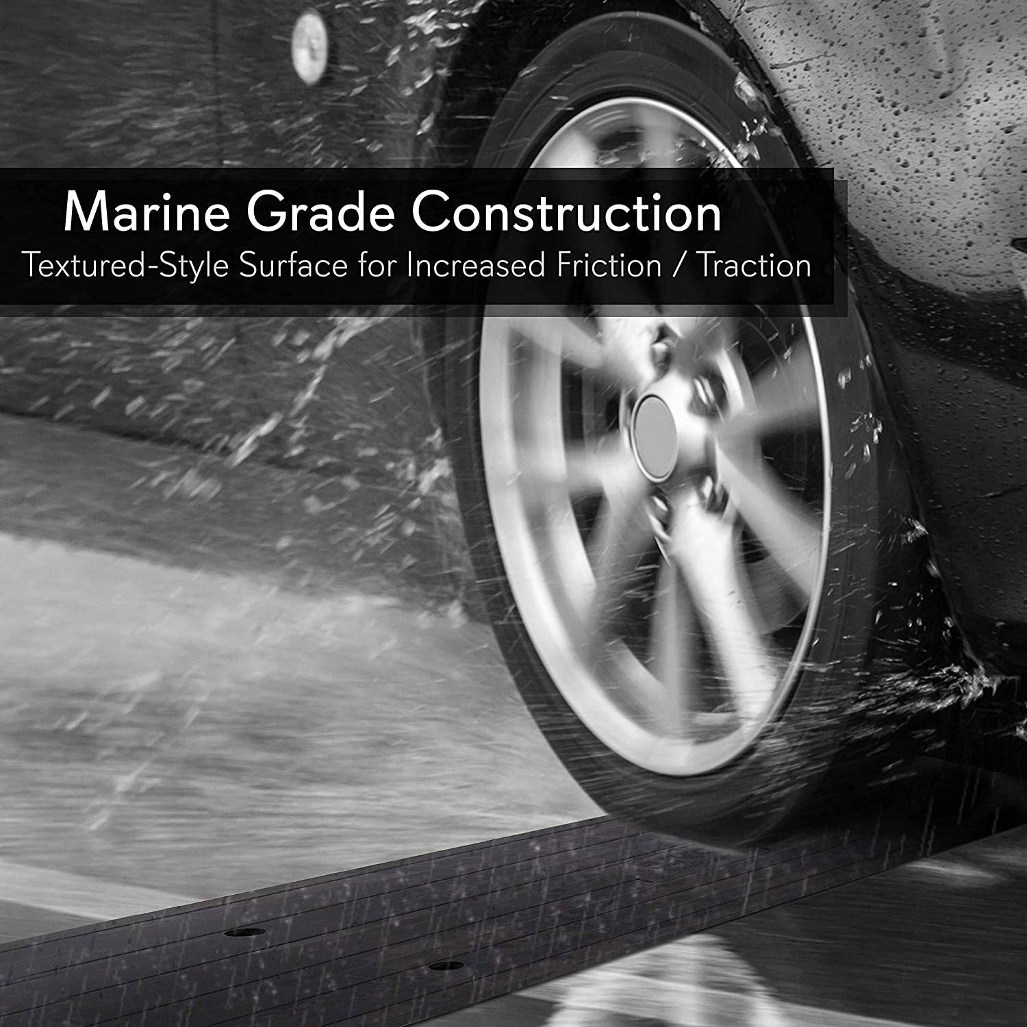 Use the curbside driveway ramp anywhere. This car ramp features a versatile design that works for cars, trucks, trailers, RVs, forklifts, scooters, bikes, and wheelchairs in indoor and outdoor environments at home or at offices and businesses. The heavy-duty vehicle curbside ramp has a textured surface for increased friction and traction on steep or uneven surfaces. Made of marine-grade, waterproof rubber, the curbside bridge ramp can be left out in the elements.