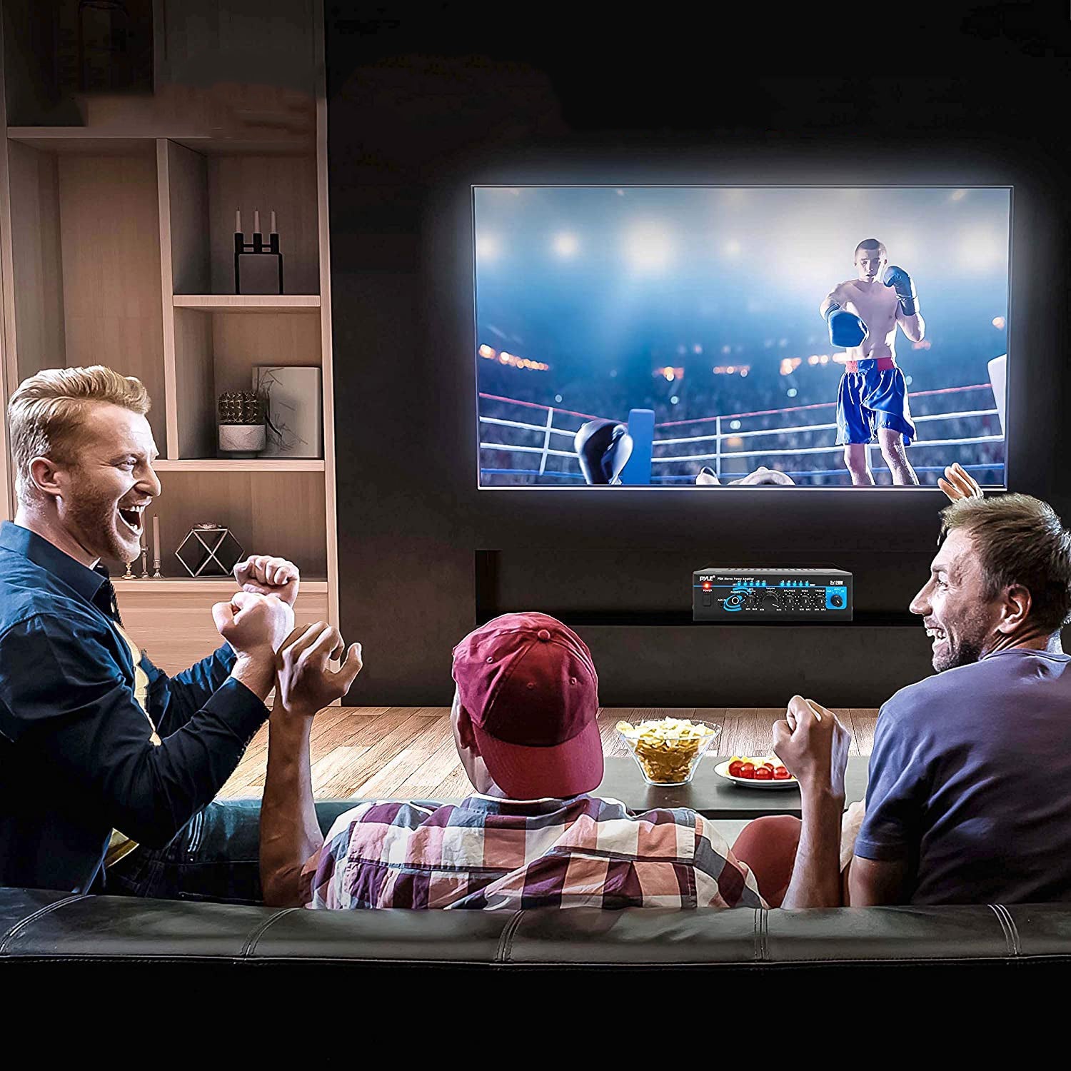 - Wireless, Bluetooth 2-channel amplifier provides at-home or office entertainment for home theater, surround sound, karaoke, and more