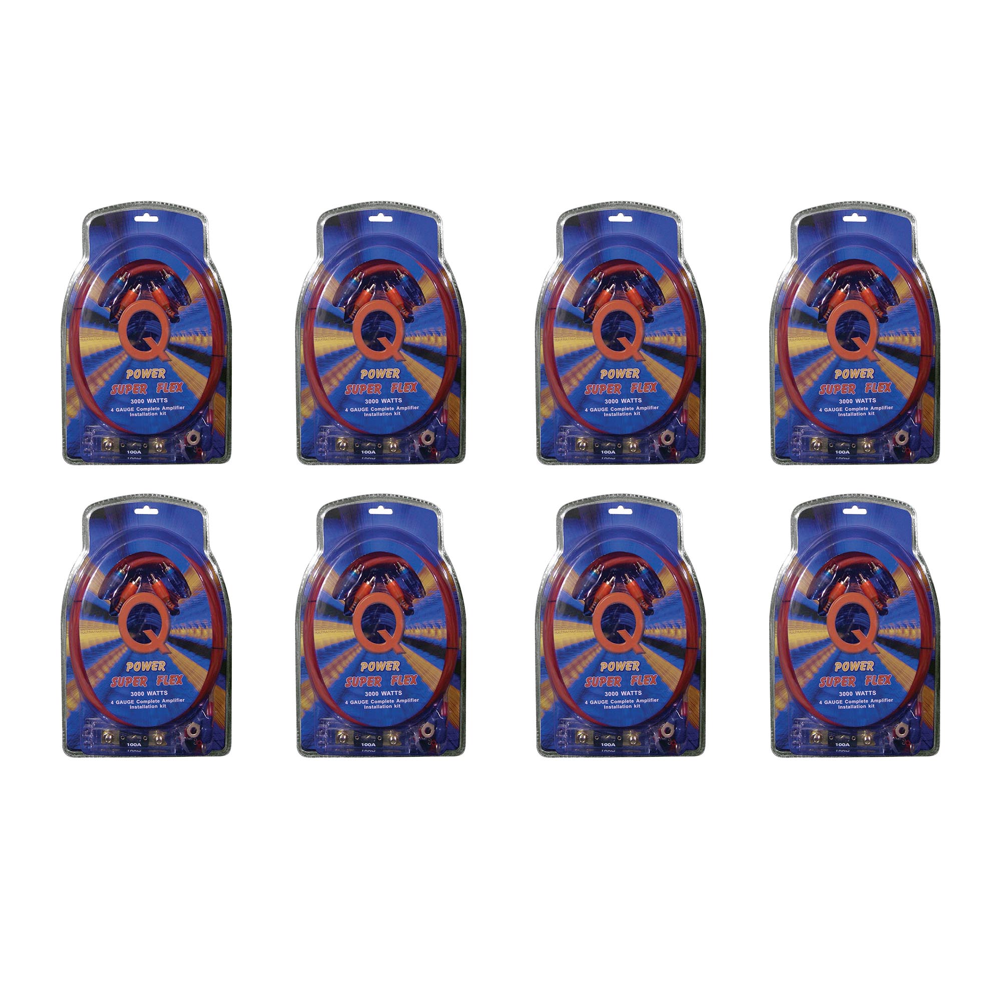 QPower Super Flex 4 Gauge 3000 Watt Car Audio Amplifier Wiring Amp Kit (8 Pack)