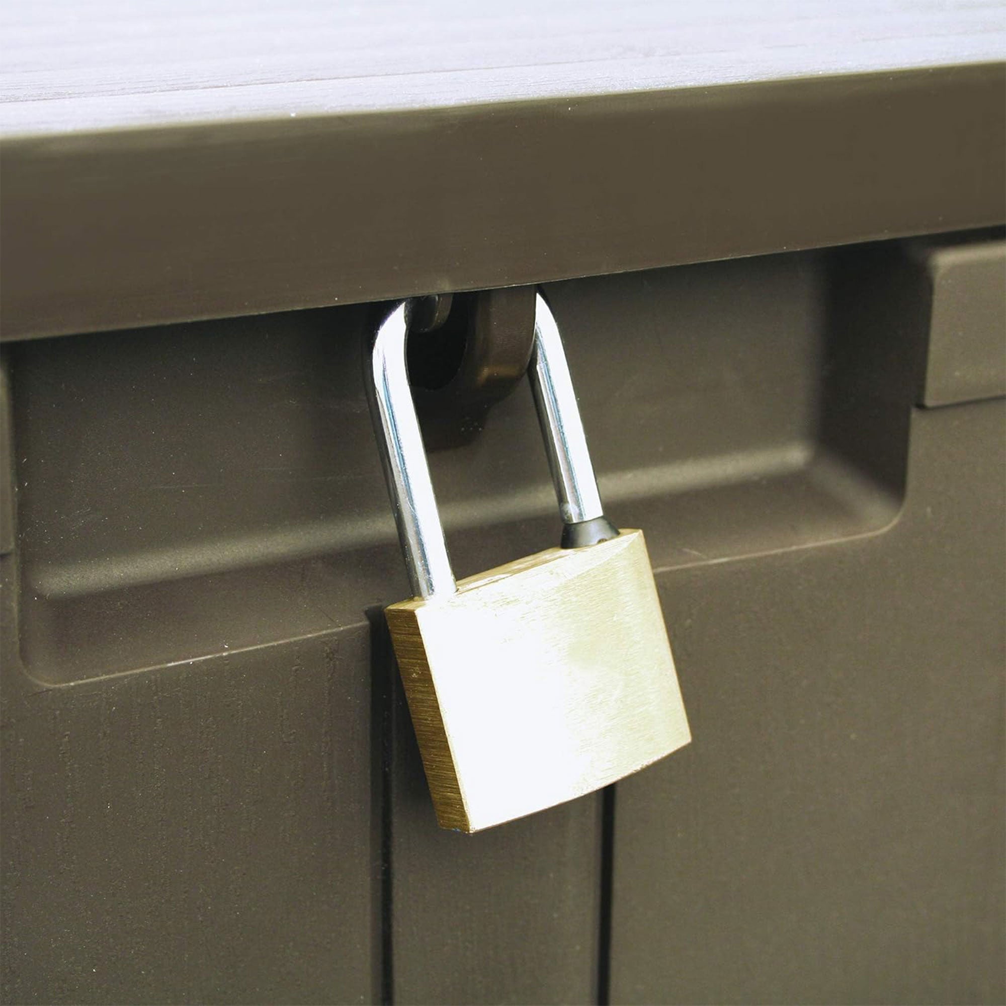 This durable plastic storage unit can be placed in any room inside or out to provide additional organization spaces and make the most of your living space. The heavy-duty plastic construction is designed to withstand even the harshest weather conditions mother nature has to offer. Plus, the lockable design allows you to add a lock for additional security (lock not included).