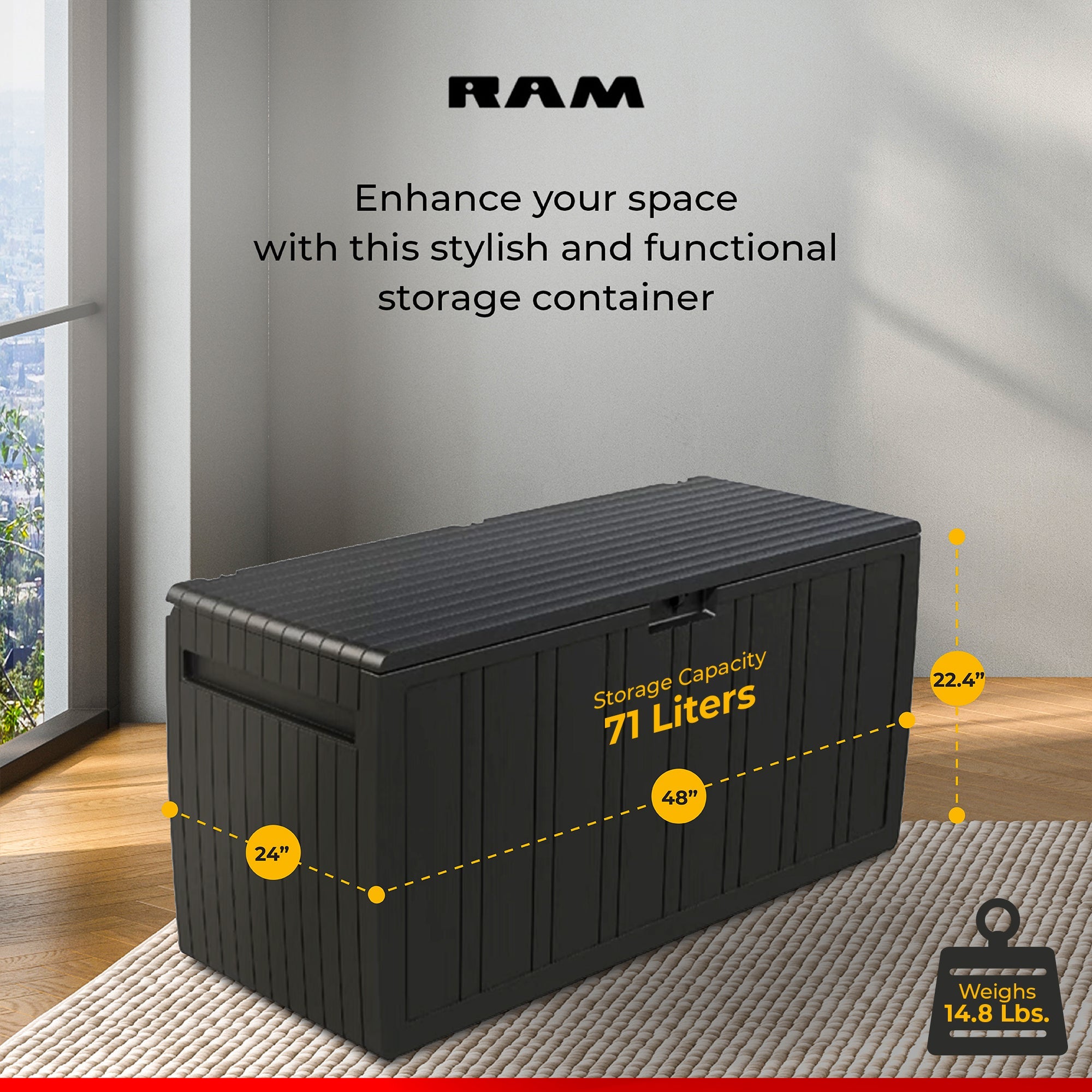 Take the clutter out of your home and spark more joy with the Ram Quality Products Outdoor Storage Deck Box Patio Furniture.