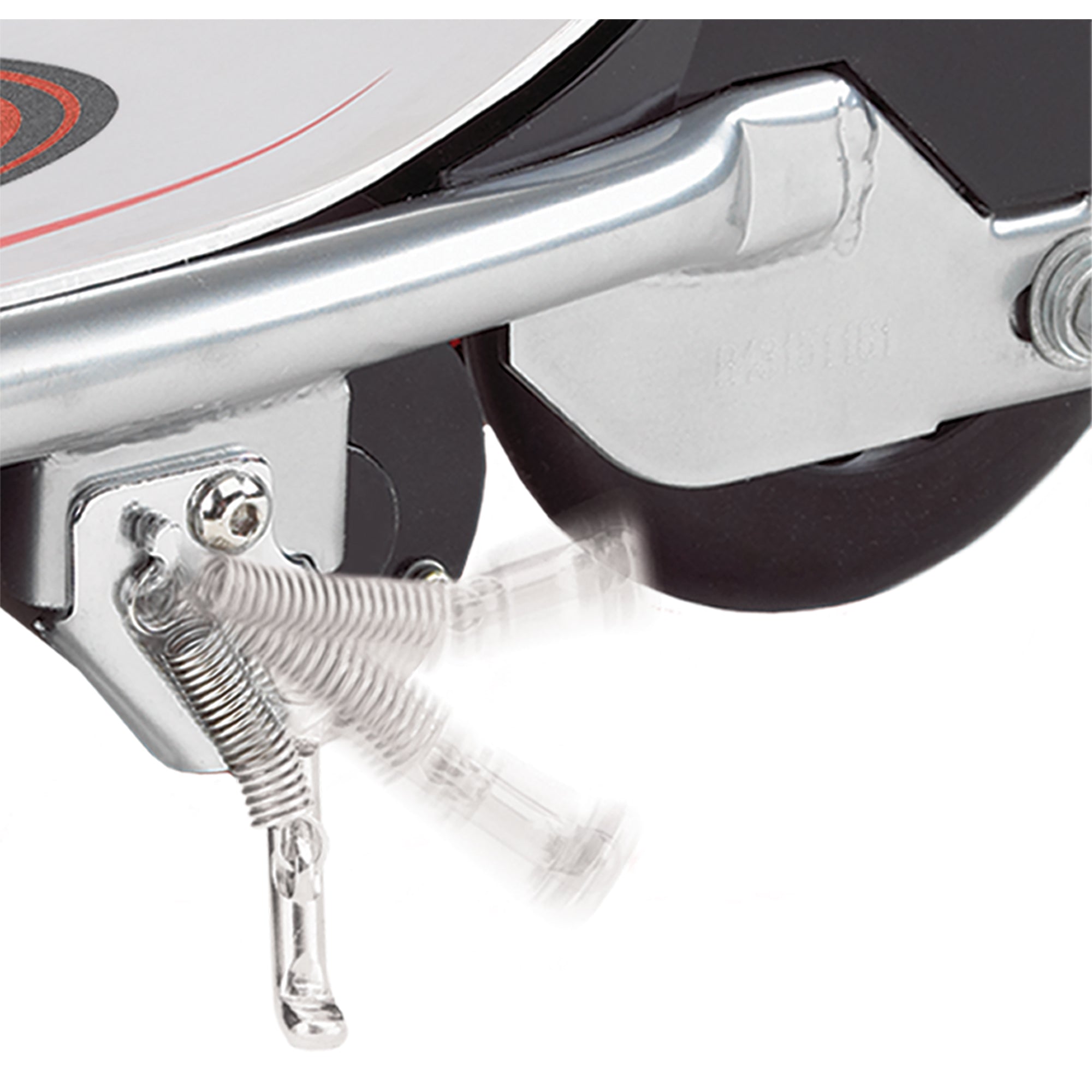 - Additional features include twist-grip acceleration control, hand-operated, front brake and retractable kickstand.