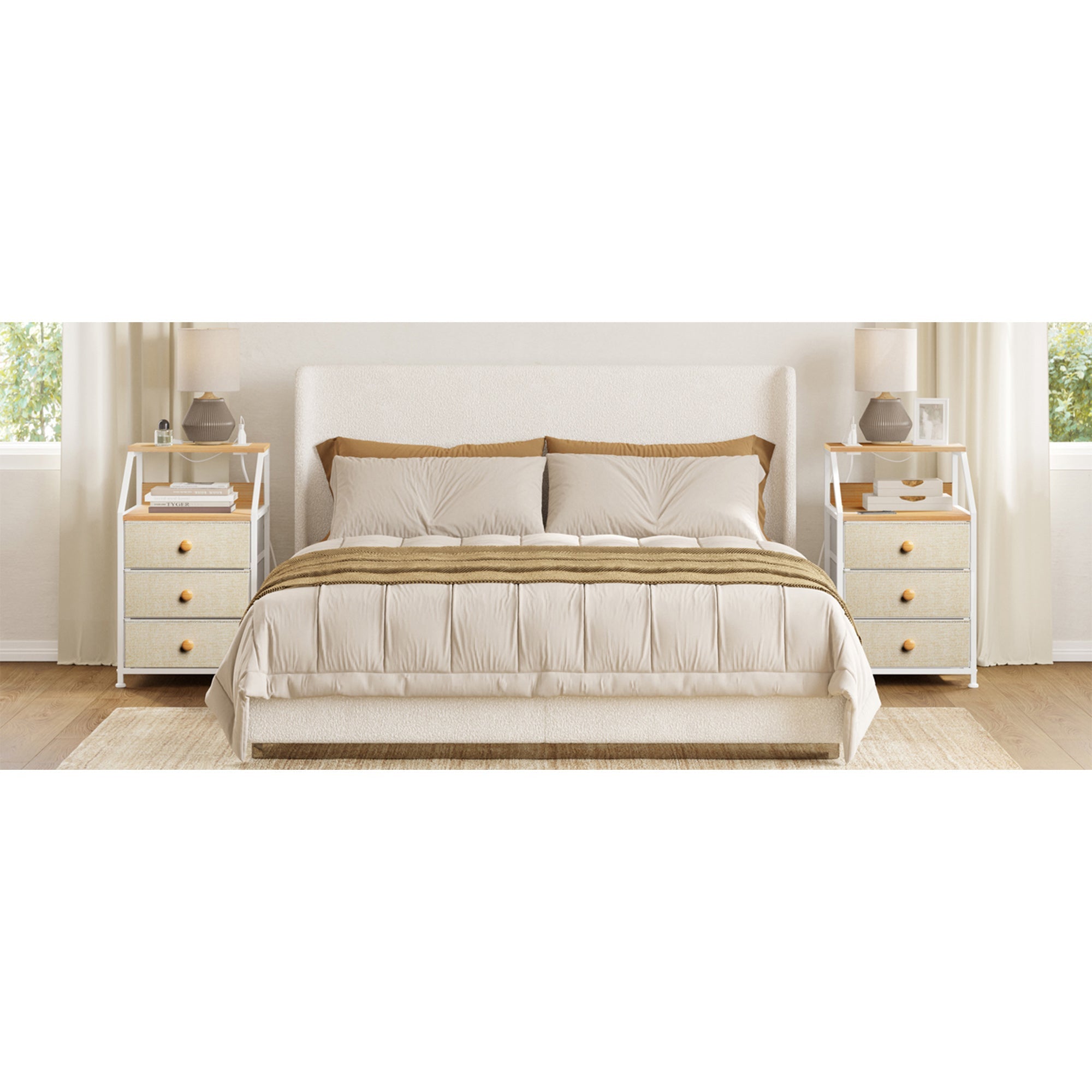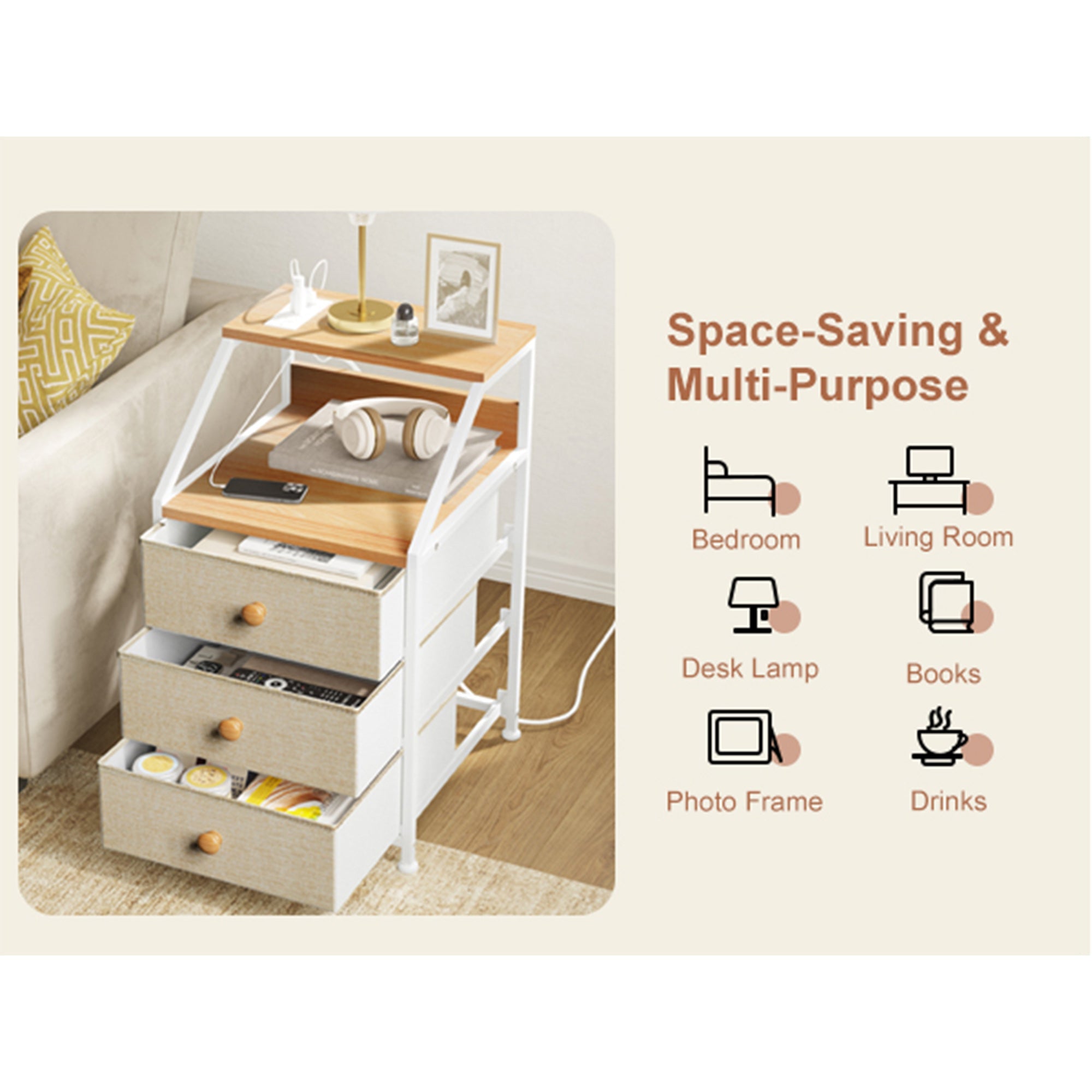 Discover the ideal balance of open and concealed storage. A middle partition shelf ensures easy access to your essentials, while the lower level boasts 3 spacious fabric drawers for remote controls, books, and more. The waterproof wooden top can hold temporary items or become a cozy spot for afternoon tea. With a weight capacity of up to 150 pounds, it's optimal for serving guests or displaying your favorite decor pieces. Plus, this end table is built to last with its robust iron frame and adjustable feet. Assembly is a breeze, taking just 20 minutes with the included tools and clear instructions.