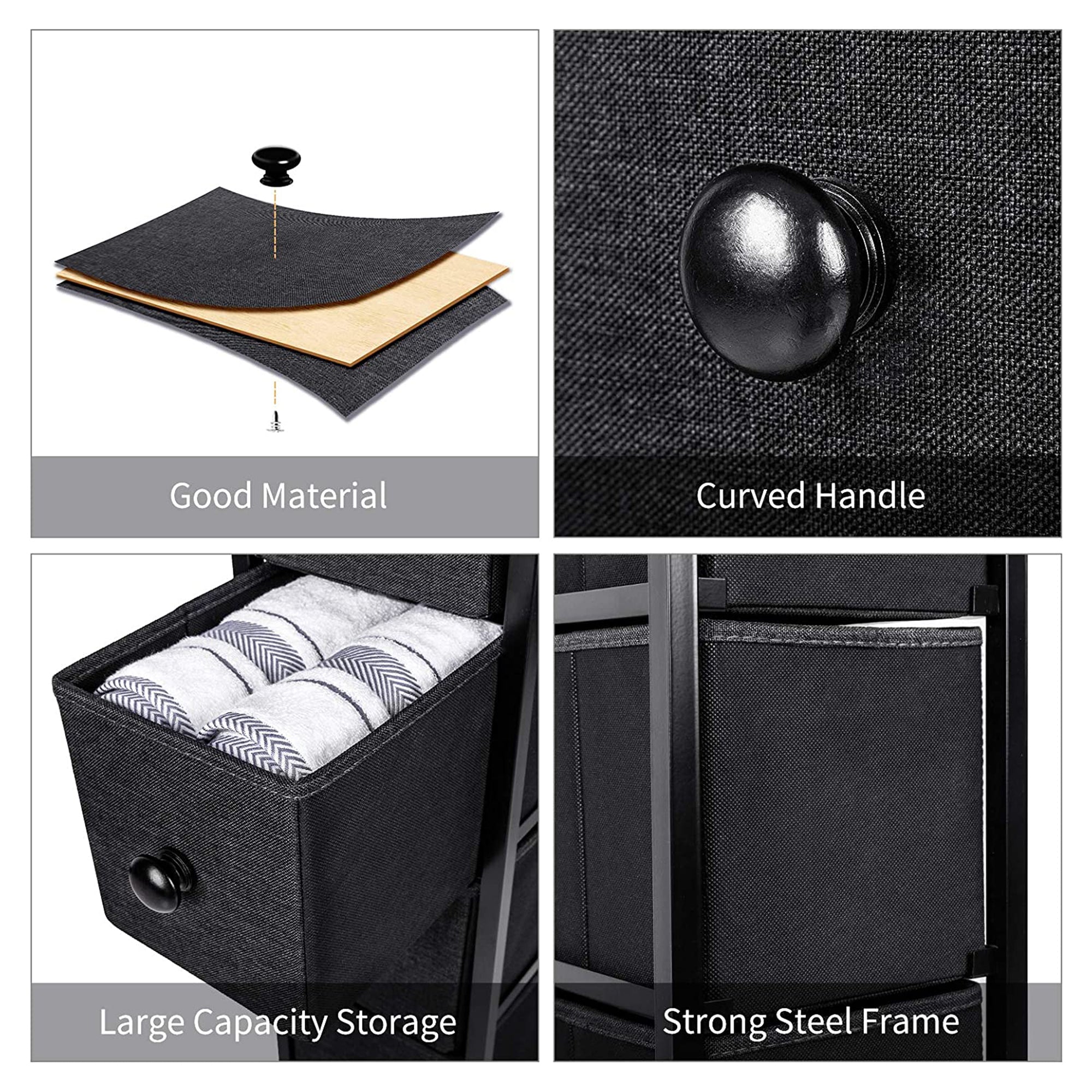 REAHOME 4 Drawer Vertical Storage Organizer Narrow Tower Dresser, Black Grey