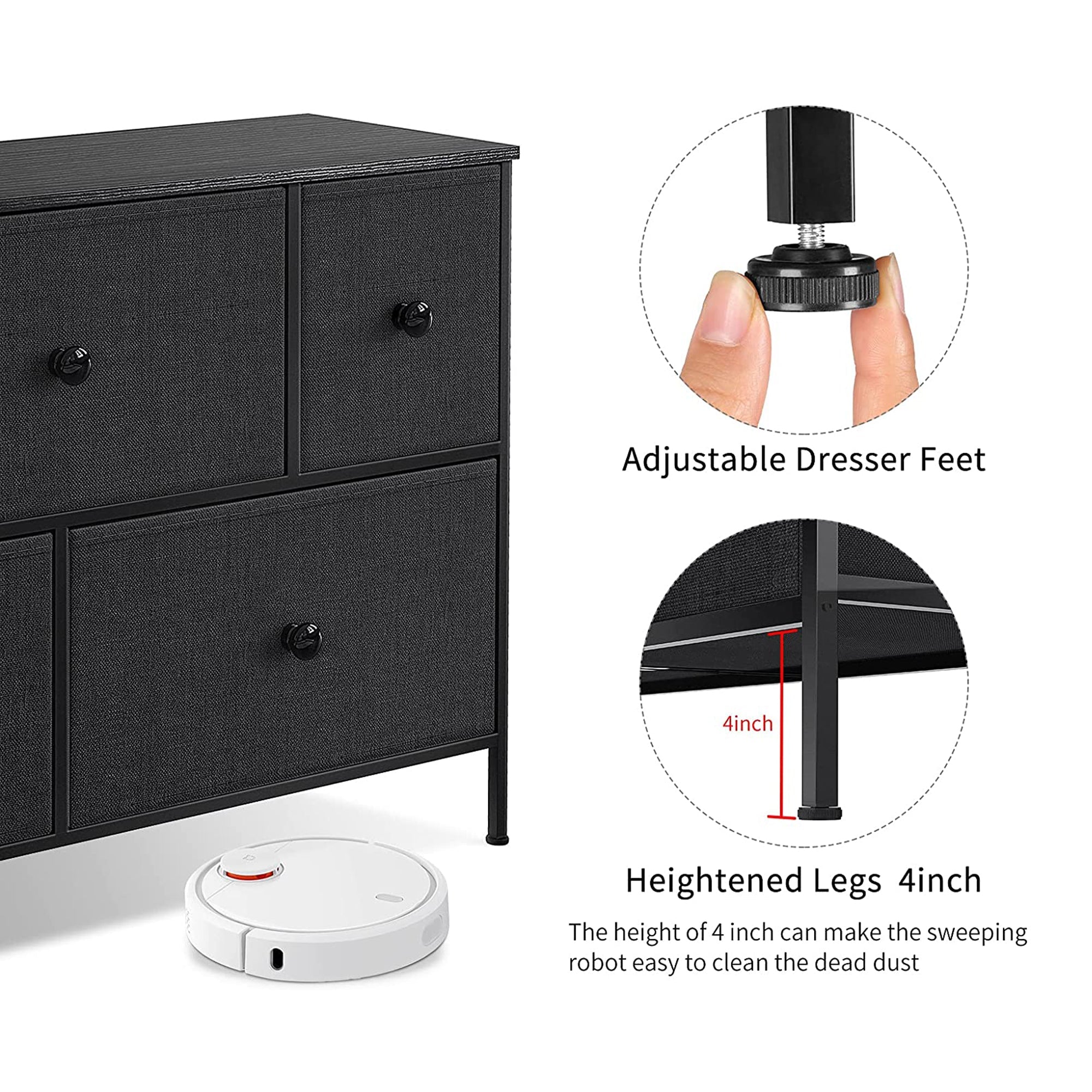 - 5-drawer minimalist bedroom dresser with adjustable feet and wall attachment for increased safety