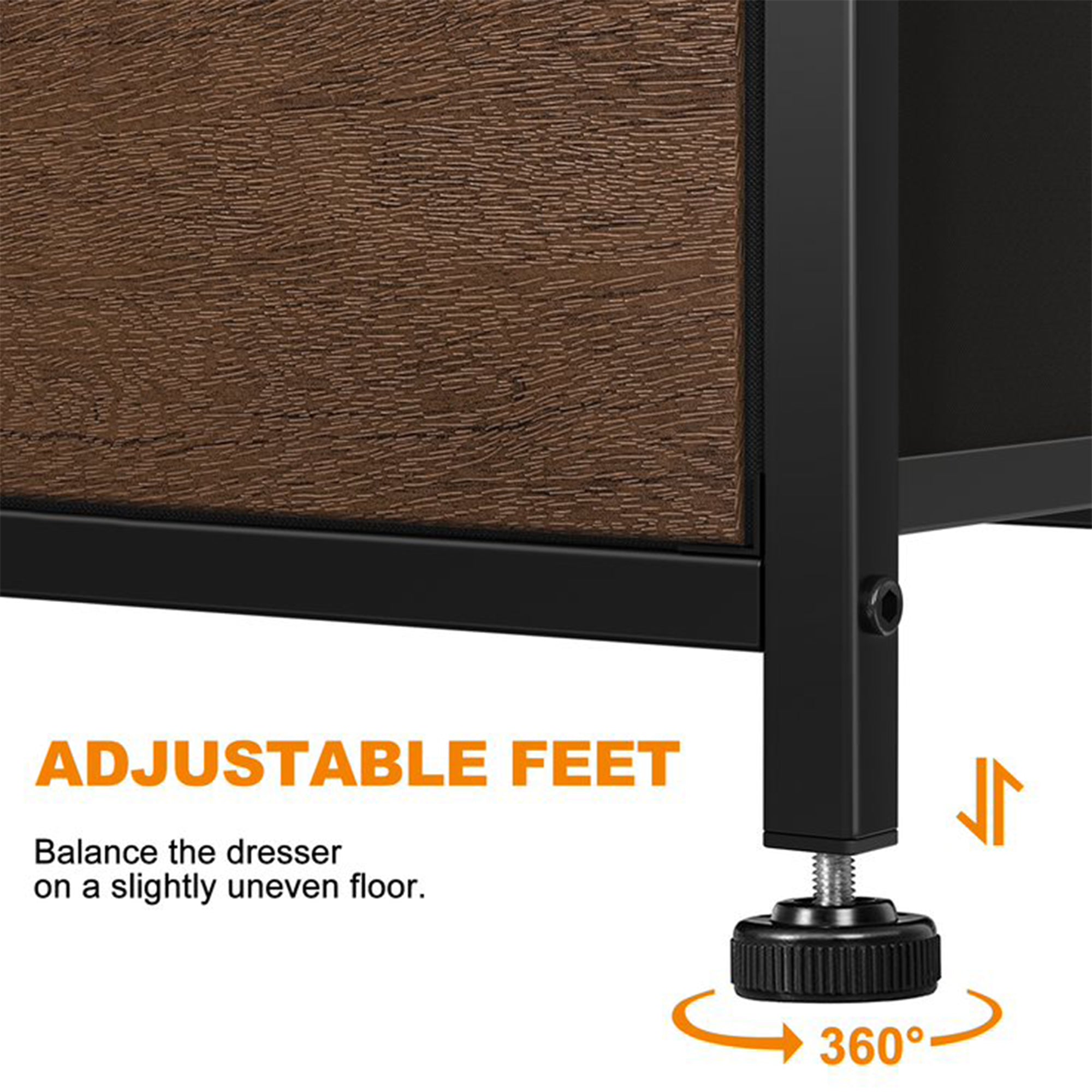 This minimalist-designed dresser drawer provides all the room you need to store anything from clothes to home goods. With 8 drawers, 6 large and 2 small, and including 2 additional drawer organizers, you'll have the ability to sort socks, ties, belts, and more. The steel frame, wooden countertop, and fabric drawers provide a sturdy structure made from reliable materials. Adorn the top 41.9-inch waterproof surface with your favorite decor items. The adjustable feet and wall attachment add a level of increased safety, especially if you have climbing pets or kiddos.